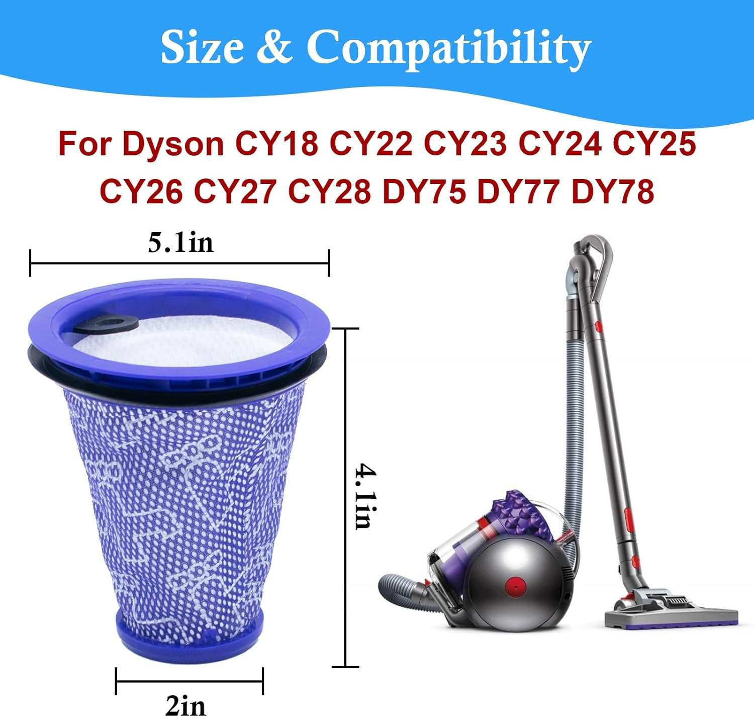 π[Compatibility] - Compatible with Dyson CY18 CY22 CY23 CY24 CY25 DY75 DY77 DY78 Big Ball Cylinder Vacuum Cleaner. Compared to Part # 967371-01. Please confirm your vacuum cleaner model before purchase! π[High Efficiency Filter] - The filters replacements are made of environmentally friendly materials, it can capture particles as small as 3 microns in the air and improve the efficiency of the vacuum cleaner. It has a hard shell and is not easy to damage. π[Washable & Reusable] - Simply rinse with clean water and let it completely air dry before reusing them. The filter can be last to be used for a long time. It's money-saving and high-efficiency. We recommend that you replace the filter replacement every 2-3 months to maintain the cleaning performance and the powerful suction power of the vacuum cleaner for optimal performance (depending upon your usage and environment) π[Package Included] - 2 HEPA Pre Filter and 1 Cleaning Brush. High-quality filters can keep your environment clean and healthy. π[Buy with Confidence] - Thank you very much for your great support. Product quality and customer satisfaction is our top priority. If you're not completely satisfied with anything you get from us, contact us and we'll make it right. ilovelife Pre Motor Filter Replacement Compatible with Dyson CY18 CY22 CY23 CY24 CY25 DY75 DY77 DY78 Big Ball Cylinder Vacuum Cleaner (2 pack)