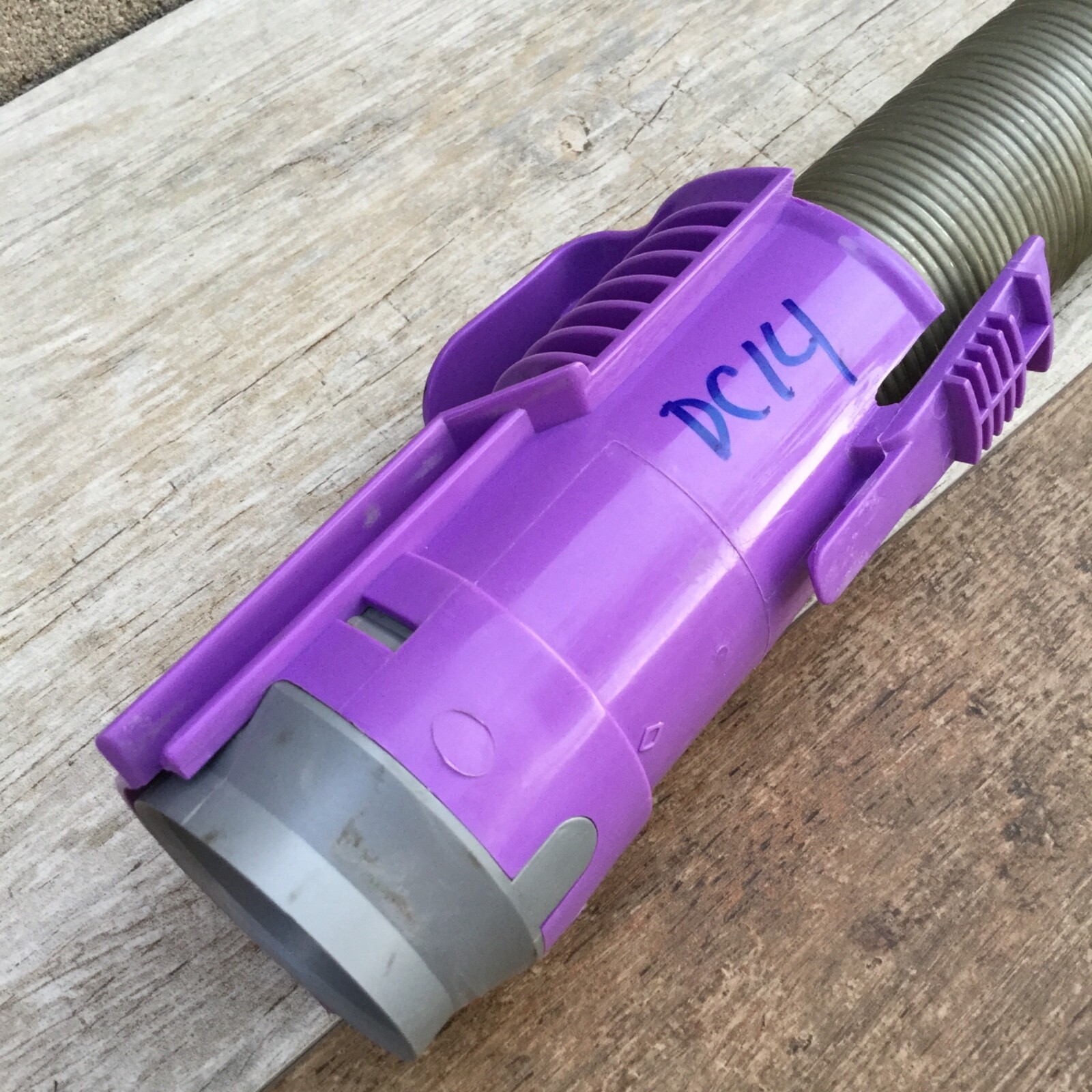 Dyson Vacuum DC14 DC07 DCO7 Main Stretch Hose Gray Purple OEM Replacement Part No splits or breaks. Typical minor scuff marks on the plastic end from the previous installation. Functions normally. Actual item shown. Non-smoking and pet-free seller. We use various methods to clean our hoses (vinegar with baking soda and Dawn dishwashing liquid.) We flush the inside with warm water until it runs clear. Even with those efforts, mild odors can linger inside the hose.
