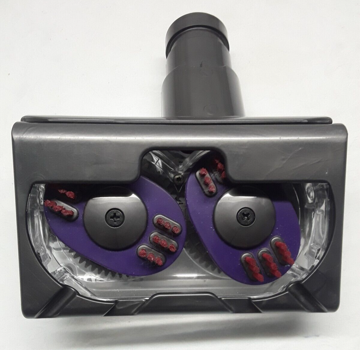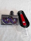 This set of two genuine Dyson attachments includes a turbine head and a soft brush for dusting. They are compatible with Dyson vacuums (please consult your manual for specific models). The turbine head is designed to pick up pet hair and dirt from upholstery, while the soft brush is perfect for gentle cleaning of delicate surfaces such as lampshades and keyboards. Made of durable plastic with a glossy finish, these attachments are almost new and in excellent condition. The set includes a manufacturer's warranty and weighs only 11 ounces. Enhance your cleaning experience with these high-quality Dyson attachments. Barely used Dyson products. 1. Genuine Dyson Tangle-Free Turbine Tool. Features a Turbine system with flexible heads that are designed not to tangle. 2. Brushing Dyson Soft Dusting Brush is Compatible with a wide range of Dyson models. Please consult with your vacuum manual before purchasing