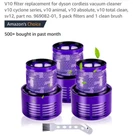 Dyson Vacuum V10 Filter Replacement for Cordless Vacuum Cleaner. 3 Pack Filters with 1 Clean Brush. Compatible with models : V10 Cyclone Series V10 Animal V10 Absolute V10 Total Clean SV12 Part No. 969082 - 01