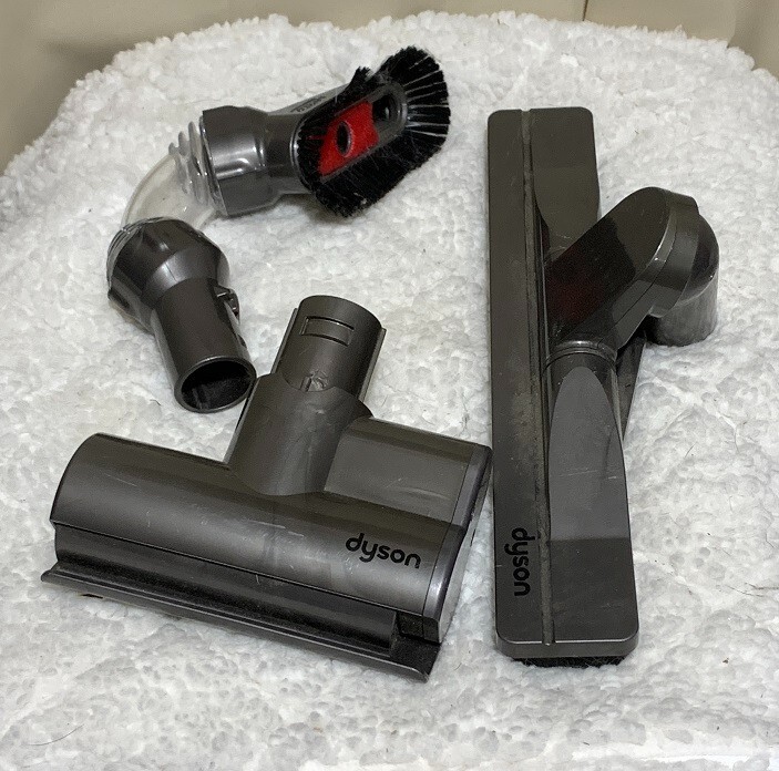 Here are 7 attachments for a Dyson vacuum cleaner. All 7 pieces are in good shape, most likely unused. All seem in good condition. See photos for more condition info. Sold as is. Winning bid gets ALL 7! From a non-smoking, pet-owning home.