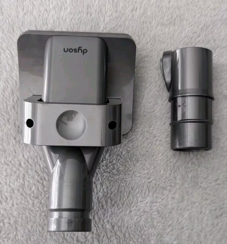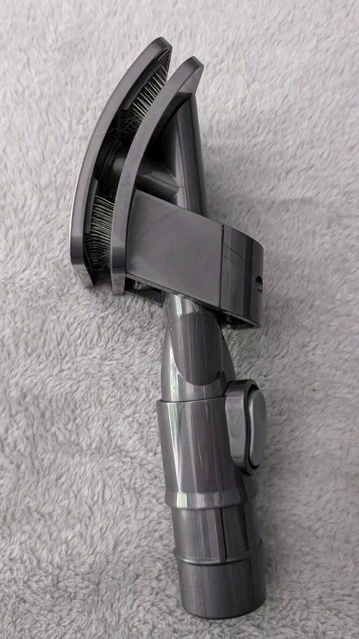 Dyson Vacuum Dog Cat Pet Grooming Tool Attachment 2 Pieces 921001-01 with quick release button Pushing on the button on top makes the grooming wires poke through the holes (see pic) for easy pet grooming. Very cool and convenient. Please see pictures of the items as the pictures are part of the description.