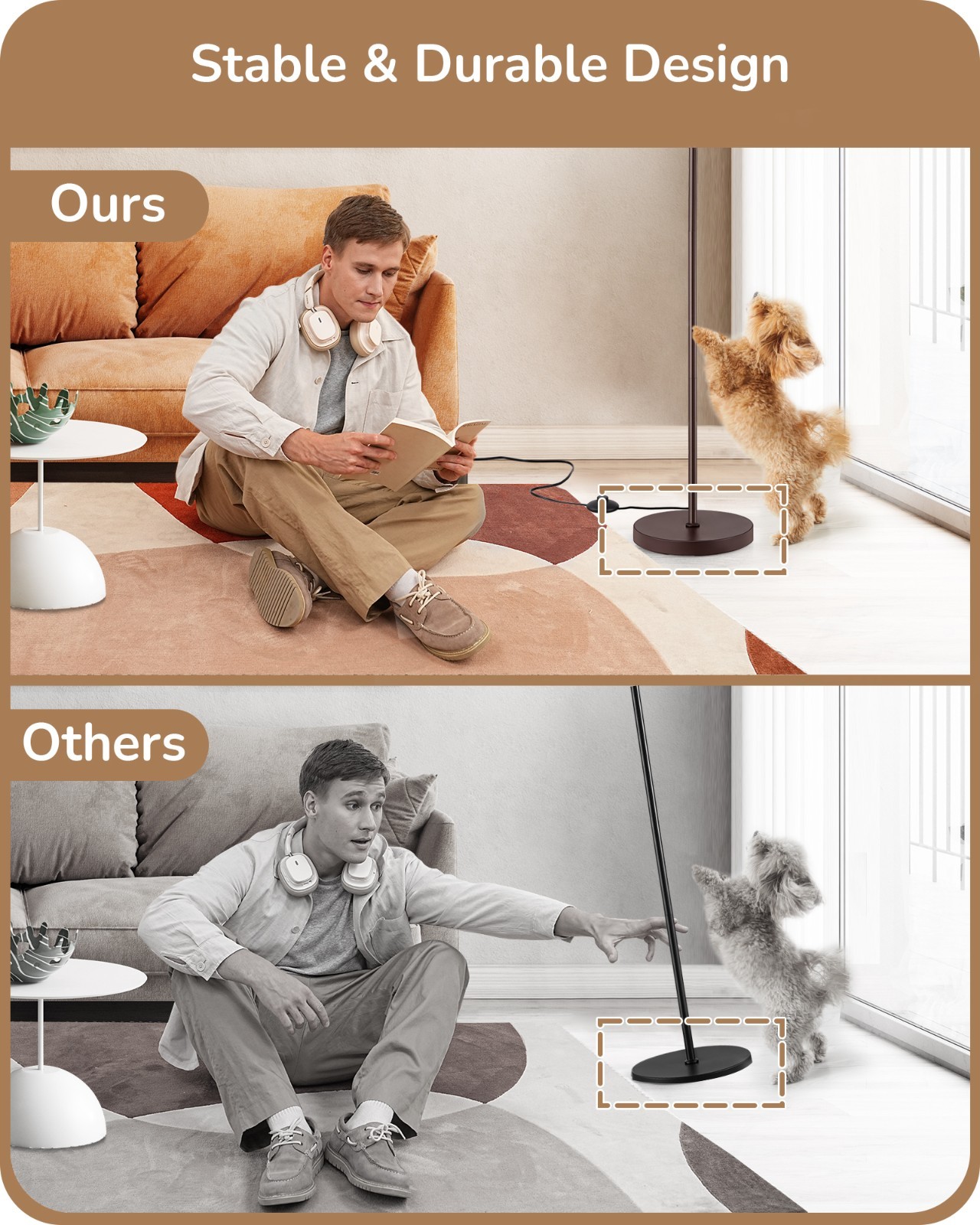 EDISHINE LED Floor Lamp for Living Room, 63.7in Modern Standing Lamp with 9W LED Bulb, 3 Color Temperature, Minimalist Floor Lamp for Bedroom, Office, Nursery, Foot Pedal Switch, Brown Product description About this item [Modern Minimalist Design] Blends seamlessly with various decor styles, making this floor lamp both a functional light source and a stylish decor piece [Adjustable Three-Color LED Bulb] This standing lamp includes a 9W A19 bulb with 2700K/4000K/5000K settings, offering warm, neutral, or bright light to suit any room style for relaxing or reading [Convenient Foot Switch] Effortless control with a built-in foot switch lets you read, work, or relax comfortably; the corner floor lamp has a 78.7-inch cord for easy placement near sofas or desks without occupying extra space [Heavy-Duty Stable Base] Our floor lamp for living room is made of premium metal, the sturdy base prevents tipping and wobbling, ensuring safe use around children in any room, from living rooms to bedrooms [Easy Assembly in Minutes] EDISHINE floor lamp for bedroom installs quickly—just screw the poles, secure the base, and assemble the lampshade; no tools needed, ready in 10 minutes