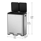EKO Essential 8+8 Gallon Dual Trash Can, Kitchen Step Recycle Trash Can with Dual Removable Bucket, Independent Lids and Pedals, Brushed Stainless Steel DUAL PEDAL RECYCLER - Effortlessly sort trash and recyclables with dual black inner bins, featuring distinct pedals for no-fuss disposal. PREMIUM RESIN & STAINLESS STEEL ELEGANCE - EKO trash can's sleek stainless steel complements the modern resin lid for a sophisticated look that stands out. It's not just a trash can—it's an addition to your home's aesthetic, effortlessly handling waste with a touch of style. CRAFTED FOR LONGEVITY - The kitchen trash can combines a robust stainless steel body with a sturdy resin lid. This blend ensures a long-lasting solution to your waste disposal needs. ULTIMATE FINGERPRINT RESISTANCE - Say goodbye to smudges and hello to a flawless exterior that stays immaculate. The anti-fingerprint finish keeps your space clean and stylish. STREAMLINED DESIGN - EKO space-conscious recycling can nestles perfectly against your wall, seamlessly optimizing your kitchen's layout. STEP ON WITH CONFIDENCE- EKO durable stainless steel foot pedals are built to last over 200,000 times, ensuring smooth and reliable operation for years to come! Shipping We offer FREE shipping on all orders! We use a selection of shipping services such as UPS, FedEx, USPS etc. We only ship to the lower 48 states, no APO/FPO addresses or PO Boxes allowed. Local pickups and combined shipping options are not provided at this time. Return You can return a product for up to 30 days from the date you purchased it. Any product you return must be in the same condition you received it and in the original packaging. Please keep the receipt. Payment We accept payment by any of the following methods: PayPal Please pay as soon as possible after winning an auction, as that will allow us to post your item to you sooner! Feedback Customer satisfaction is very important to us. If you have any problem with your order, please contact us and we will do our best to make you satisfied. Contact Us If you have any queries, please contact us via ebay. We usually respond within 24 hours on weekdays. Please visit our eBay store to check out other items for sale! Thank you for shopping at our store.