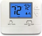 ELECTECK Non-Programmable Digital Thermostat for Off-white ( Blue Backlight ) Product Details Brand: ELECTECK Product Dimensions: 0.98"D x 4.72"W x 3.86"H Controller Type: Push Button Special Feature: Non-Programmable, Separate Heating and Cooling Swing, Low Battery Indicator, 5 Minute Compressor Delay Protection Non-Programmable, Separate Heating and Cooling Swing, Low Battery Indicator, 5 Minute Compressor Delay ProtectionNon-Programmable, Separate Heating and Cooling Swing, Low Battery Indicator, 5 Minute Compressor Delay Protection See more Color: Off-white ( Blue Backlight ) 【Non-Programmable Thermostat】Non-programmable electronic thermostat, single stage, 1 heating and 1 cooling, electric or gas/oil configurable. Not compatible with 110-240V electric heat systems (e.g. electric baseboard heat, line voltage, convectors, radiant-ceiling heat. 【Single Stage 1 Heat/1 Cool】Work with single stage heating, cooling and heat pump (without aux) systems. Does not work with multi-stage systems, mini split systems, heat pump (with aux or emergency heat) systems and 12v rv thermostats. 【Large Digital LCD Display】Easy-to-read digital 4.5 sq. in. display with large characters and white backlight. Big separate buttons for easy setting. 【Temperature Control】Precise temperature control with +/- 1 degree in Fahrenheit and Celsius for ultimate consistent control. 【Easy to Install】Easy installation, dual powered by 24VAC power or 2 AAA batteries, C-wire is not required.