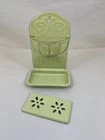 You are looking at an " ENAMEL WARE GREEN WALL MOUNTED SOAP DISH SPONGE HOLDER " Features lid for soap on bottom and sponge basket. Wall mount measures at 5 3/4" x 8 1/2". In used condition. You will receive everything that you see in the pictures. Please look at them closely to see what all is included. Thanks. Details: ENAMEL WARE GREEN WALL MOUNTED SOAP DISH SPONGE HOLDER Measures 3/4" x 8 1/2" Features lid for soap on bottom and sponge basket In used condition Please look at the photographs provided for the best description You get what you see in the pictures so please look closely at all of the pictures and make sure that this is exactly what you want before you decide to make a purchase. WASHINGTON STATE SALES TAX WILL BE ADDED TO THE FINAL PRICE - IF THE ITEM IS BEING SHIPPED ANYWHERE IN WASHINGTON STATE ! "OUR e B A Y MISSION" : "Our family would like you to be happy with your purchase, we will not intend to misrepresent anything that we have up for auction on eBay. Please, take the time to let us know if there is a problem, we will work with you! We ask that you don't leave negative feedback right off the get/go, without giving us a chance to work with you - for the simple reason that we want to make sure you are satisfied with your purchase - and we will do whatever we can to make that happen". SHIPPING: REGULAR S&H FOR THE LOWER 48 STATES EBAY MEMBERS: The winning bidder is to pay $12.66 for s&h to anywhere in the lower 48 states. Please ask for a shipping quote if you need it to be shipped somewhere else. International shipping on this item is going to be more than shipping to the US lower 48 states. Shipping quote is REQUIRED before a bid is placed. We try and get it to you as quickly as we can for a good price! Track Page Views With Auctiva's FREE Counter THANKS FOR LOOKING AT THIS AUCTION - AND HAPPY BIDDING!!! SS-18