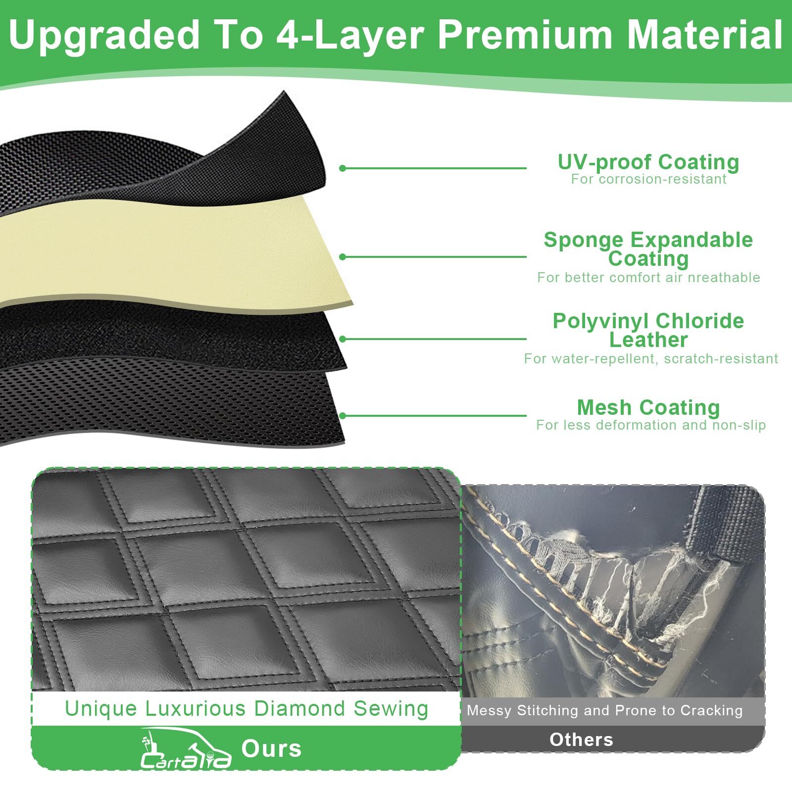 EZGO RXV Seat Cover, Golf Cart Front Seat Cover Fit for EZGO RXV OEM Ordinary Seat Cushion, Thick Vinyl Leather Comfortable/Breathable, No Need Any Tools or Detaching Armrests Compatible Models: Golf cart seat covers fit EZGO RXV front OEM ordinary seats only. This EZGO seat cover kit contains 1 front backrest cover (about 37 X 10.5 X 4.5 inches) and 1 front bench seat cover (about 39 X 19.5 X 4.5 inches). Note: NOT fit luxurious thick cushions, NOT fit rear seat Simplified Setup: This ezgo rxv front seat cover is designed for hassle-free installation, requiring no tools or the removal of armrests. The inclusion of straps ensures a smooth installation process, eliminating the need for nails or the removal of the existing vinyl seat cover. Simply drape the cover over your old seat, and with the adjustable shoulder straps and retractable buckles, you can install or remove the seat cover in a matter of minutes Superior Construction: Crafted from premium, long-lasting thick PVC faux leather, these ezgo front seat covers offer unparalleled softness, safety, durability, water resistance, scratch protection, UV defense, and effortless maintenance. Fading and cracking are not a concern. Additionally, the interior boasts a thick, breathable sponge layer with exceptional resilience, enhancing your comfort and overall golfing experience Exquisite Diamond Aesthetic: Transform your worn or damaged golf cart seat with bespoke, luxurious diamond-patterned ezgo seat covers set for the front. These covers enhance the style and elegance of your golf cart, adding a touch of sophistication. Constructed from high-quality, durable PVC vinyl leather with breathable foam padding, they offer a perfect blend of durability, comfort, and fashion, ensuring a supremely enjoyable and comfortable golfing experience Enhanced Configuration: Featuring a sleek vinyl PVC leather material in a black hue, this design offers exceptional ease of cleaning and dirt resistance. The deluxe diamond pattern revitalizes your golf cart, lending it a modern and fashionable look. High-quality elastic rope and adjustable buckles ensure that the seat covers fit securely around the cushions, providing stability. Additionally, a small pocket provides convenient storage for keys, cards, phones, and other essential items EZGO RXV Seat Cover, Golf Cart Front Seat Cover Fit for EZGO RXV OEM Ordinary Seat Cushion, Thick Vinyl Leather Comfortable/Breathable, No Need Any Tools or Detaching Armrests Shipping We offer FREE shipping on all orders! We ship within Three business days of payment, usually sooner. We use a selection of shipping services such as UPS, FedEx, USPS etc. We only ship to the lower 48 states, no APO/FPO addresses or PO Boxes allowed. Local pickups and combined shipping options are not provided at this time. Return You can return a product for up to 30 days from the date you purchased it. Any product you return must be in the same condition you received it and in the original packaging. Please keep the receipt. Payment We accept payment by any of the following methods: PayPal Please pay as soon as possible after winning an auction, as that will allow us to post your item to you sooner! Feedback Customer satisfaction is very important to us. If you have any problem with your order, please contact us and we will do our best to make you satisfied. Contact Us If you have any queries, please contact us via ebay. We usually respond within 24 hours on weekdays. Please visit our eBay store to check out other items for sale! Thank you for shopping at our store.