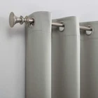 Blackout technology blocks out most unwanted light while enhancing privacy Energy efficient design reduces energy lost through your windows by up to 25% Thermal properties help keep summer heat and winter chill out of your home Noise reduction up to 25% helps you get a sounder, more uninterrupted sleep Built-in metal grommets fit curtain rods up to 1.5" in diameter Each panel sold separately. (Image features 2 panels) Panels sold individually. Measure carefully prior to purchase. (Image features 2 panels) Performance varies by product color; darker the base color the more light blocked Note: Depending on the brightness on the computer, color may look slightly different