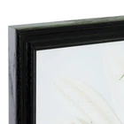 This simple black picture frame offers a winning combination of quality, finish and affordability. The Wiltshire ash frame series are constructed from North American ash trees. This .75" moulding—finished with semi-gloss Ebony stain—showcases wood grain patterns unique with each frame. The traditional styling of the Wiltshire ash is ideal for a wide range of prints and decor. Traditional style; shiny black with wood grain finish Frame includes: white mat, acrylic facing, cardboard backing and hanging kit. Assembly required Matted frame is designed to display a 14x20 print. Actual mat opening is 13.5x19.5. Frame will display a 19x25 print without the matting. Frame moulding is 0.75 inch wide; solid Ash wood Frame is designed for WALL HANGING only (hardware allows for portrait or landscape orientation)