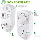 EASY TO OPERATE: Just plug in this adjustable thermostat, select heat / cool mode with the user-friendly switch and it will automatically turn on or off your heating or cooling devices through your preset target temperature. EFFORTLESS TEMPERATURE SETUP: This non-digital plugin thermostat comes with an adjustable temperature dial and the current temperature is displayed on the center for easy reference. Temperature control range is 41-86°F. SAVES YOU ON YOUR HOME ENERGY BILLS: You’re always a winner with this heating & cooling thermostat. It’s energy efficient while maintains a consistent ambient room temperature. VERSATILE USES: Suitable for most portable space heaters, air coolers, and circulating fans. Can also be used for refrigeration, fermentation, greenhouse fan and designed to suit almost any application you can imagine. SAFE & RELIABLE: This 3-Prong thermostat plug into a standard socket is ETL listed and rigorously tested for quality control and safety. Conforms to UL Std No. 60730-1, 60730-2-9. Rated Voltage is 125VAC 60Hz, Max Loading: 15A 1875W and has a recoverable overload short circuit. Dimensions: 5” x 2.5” x 2.5” Product Description
