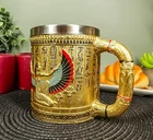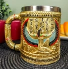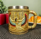 • This golden winged Isis mug is made of high quality resin, individually hand painted and polished. Color Tone May vary from pictures. Handwash Only • This golden winged Isis mug is 4.25" tall, 5.25" long and 3.25" in diameter. Mug holds 12 ounces. • The Egyptian goddess Isis was worshipped throughout Egypt, even from very early dates. Isis was considered to the patron saint of women, mothers and children. Additionally, ancient Egyptians referred to her as Isis the goddess of magic. It is told that she managed to trick Re into revealing his secret name to her and in doing so, Isis obtained many magical powers. Unlike many Egyptian gods and goddesses, she remained in the same form from the beginning of her history to current dates. • Soda can and props placed next to the item are not included Ebros Egyptian Theme Winged Isis Goddess of Magic & Home Coffee Cup Mug Beer Tankard Video will open in a new window Using the mobile app? Copy this link into your browser: