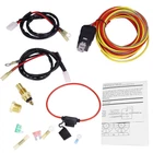 Fitment: 2 x 8 inch Fans, 2 x 10 Inch Fans, 2 x 12 Inch Fans, 2 x 14 Inch Fans Single, 8 Inch Fan Single, 10 Inch Fan Single, 12 Inch Fan Single, 14 Inch Fan Single, 16 Inch Fan(Two 16 inch fans,need 2 Relay Kits) Control: Activates at 185 degrees and deactivates at 165 degrees Condition: Brand new and securely packaged Easy Installation: Directly replaces existing parts Package Included: 185 Degree Thermostat Switch, 1 Relay Wire Harness, 1 3/8" NPT Thread-In Probe, 2 Ring Terminals, 2 Fan Pigtail Connectors, 1 Fuse Holder, 3/8" to 1/2" Adapter 30 & 40 amp Fuses, English instruction Product Description Specifications Brand: QKPARTS Condition: 100% new Voltage: 12.0 volts Color: red and yellow Material:plastic copper aluminum Item Type: Electric Cooling Fan Wire Harness Kit Item Description Function This kit is set up to turn your electric fan on at 185 degrees and shut off at 165 degrees and will work with any 12 volt system. COMES ON at 185 degrees and turns off at 165 degrees. It is a 3/8" pipe thread, this kit includes everything you'll need to hook up to your fan. Works for 2 x 8 inch Fans 2 x 10 Inch Fans 2 x 12 Inch Fans 2 x 14 Inch Fans Single 8 Inch Fan Single 10 Inch Fan Single 12 Inch Fan Single 14 Inch Fan Single 16 Inch Fan (Two 16 inch fans, need 2 Relay Kits) Included in this Relay kit 185 Degree Thermostat Switch 1 Relay Wire Harness 1 3/8" NPT Thread-In Probe 2 Ring Terminals 2 Fan Pigtail Connectors Included 1 Fuse Holder 3/8" to 1/2" Adapter 30 & 40 amp Fuses