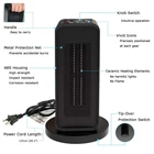 ✅ [3 Heating Modes] Switch the knob to: 1) high-power heating mode (1200w), will instantly heat your chilly space up and make you feel the warmth in max. 3s; 2) economic heating mode (600w), heats gently to keep the warmth and coziness while saving your energy bill; 3) fan-only mode, provides breeze only – perfectly satisfy your requirements for air circulation boost without heat. ✅ [90° Oscillation] Evenly distribute the heat to a wide area of your room. Share the warmth with your family. Feel free to move in your bedroom, living room, dining room, or garage. No constraints caused by uncovered heating corners in the room. Good atmosphere for a small party. ✅ [Anti-Tip & Overheat-Proof] UL & RoHS certified. The integrated tip-over switch immediately cuts power off if the heater is knocked askew, preventing potential fire hazards. Overheat protection diligently monitors internal temperatures to prevent circuit damage or overloading, which frees your worries about unattended energy consumption or dangerous situations. ✅ [Energy Saving] Wattage: 600W / 1200W. Will not overload the circuit. Perfect for small spaces up to 60㎡ (646ft²) (ideal heating effect for: 20㎡, namely, 216 ft²). With a built-in precise temperature sensor, it can quickly heat your office cube or bedroom while consuming 20% less energy than traditional heaters, bringing cozy warmth to those living in mild climates. ✅ [Hands-on Control & Compact] The top-mounted knob switch, accompanied by vivid icons precisely positioned at each gear, enables straightforward, pure mechanical, and accurate operations. More durable and reliable. Intuitive to users of all ages. Space saving design with dimensions – Height: 28.5cm (11.22”), Width: 16cm (6.3”), Depth: 16cm (6.3”).