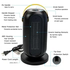 ✅ [3 Heating Modes] Switch the knob to: 1) high-power heating mode (1200w), will instantly heat your chilly space up and make you feel the warmth in max. 3s; 2) economic heating mode (600w), heats gently to keep the warmth and coziness while saving your energy bill; 3) fan-only mode, provides breeze only – perfectly satisfy your requirements for air circulation boost without heat. ✅ [90° Oscillation] Evenly distribute the heat to a wide area of your room. Share the warmth with your family. Feel free to move in your bedroom, living room, dining room, or garage. No constraints caused by uncovered heating corners in the room. Good atmosphere for a small party. ✅ [Anti-Tip & Overheat-Proof] UL & RoHS certified. The integrated tip-over switch immediately cuts power off if the heater is knocked askew, preventing potential fire hazards. Overheat protection diligently monitors internal temperatures to prevent circuit damage or overloading, which frees your worries about unattended energy consumption or dangerous situations. ✅ [Energy Saving] Wattage: 600W / 1200W. Will not overload the circuit. Perfect for small spaces up to 60㎡ (646ft²) (ideal heating effect for: 20㎡, namely, 216 ft²). With a built-in precise temperature sensor, it can quickly heat your office cube or bedroom while consuming 20% less energy than traditional heaters, bringing cozy warmth to those living in mild climates. ✅ [Hands-on Control & Compact] The top-mounted knob switch, accompanied by vivid icons precisely positioned at each gear, enables straightforward, pure mechanical, and accurate operations. More durable and reliable. Intuitive to users of all ages. Space saving design with dimensions – Height: 28.5cm (11.22”), Width: 16cm (6.3”), Depth: 16cm (6.3”).