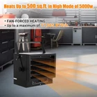 You may also like 1500W Infrared Quartz Space Heater Portable Remote 3 Heat Settings Timer Safety 109.72 USD 115.49 USD Free shipping 5% off Freestanding Portable Electric Fireplace Heater with Remote Infrared Fireplace 88.01 USD 92.64 USD Free shipping 5% off About this item Efficient Ceiling Mount: The electric garage heater is designed for ceiling mounting and hard-wired installation, this fan-forced heater is perfect for spaces like warehouses, garages, and storage areas where floor space is limited. By utilizing the overhead space, you can maximize the utilization of your area while still enjoying powerful heating capabilities. Embrace the space-saving benefits of this ceiling-mounted heater and keep your valuable floor space free from obstructions, Which more safe than the plug design. Adjustable Angle & 3 Heat Settings: This garage heater has adjustable louvers and variable mounting angle to direct the air output. Its maximum BTUs of 17,065 is powerful enough to heat a large area up to 500 square feet. Power ranges from low to high, 3,000 watts, 4,000 watts, and 5,000 watts to meet your different needs in cold days. It also features automatic over-heat protection and a caution indicator light for your safe use. Thermostat & Overheat Protection: Our garage heater is equipped with a built-in thermostat. You can adjust the thermostat to suit your needs and preferences. And a built-in sensor switches the device off automatically if it overheats. And preferences Control Adjusts Temps: 45-95°F/7-35°C. User-Friendly Temperature Control: The ceiling mount heater features a knob thermostat that provides convenient and precise control over the temperature settings. With these intuitive controls, you can easily adjust the heat output to achieve the perfect level of warmth for your space. The quick on/off functionality ensures effortless operation of the heater, allowing you to enjoy immediate comfort with just a simple twist of the knobs. Safety Hard-wired Installation: Designed with your safety in mind, this ceiling mount heater is equipped with intelligent safety features for worry-free operation. The built-in sensor monitors the temperature and automatically shuts off the device if it detects overheating, providing reliable protection against potential hazards. The power indicator light conveniently illuminates when the unit is in use, giving you clear visual confirmation of its operational status. Brand:TROPOW Special Feature:Overheat Protection, Electronic Thermostat, Fast Heating Color:Black Form Factor:Cabinet Indoor/Outdoor Usage:Indoor Power Source:Hard-Wired Heating Method:Forced Air Item Weight:22. 4 Pounds Heat Output:17065 British Thermal Units