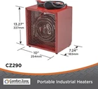 Store New Arrivals Add to Favorite View Feedback Contact Electric Fan-Forced Industrial Garage, Workshop Utility Space Heater, Thermostat Control, Heavy Gauge Steel, Carry Handle, Rubber Feet, NEMA 6-30P, & Overheat Protection, 4,800W, CZ290 Description Power Source Corded Electric Fuel Type Electric Room Type Garage, Home Model Number CZ290 Item Weight 121 Pounds Heat Output 17065 British Thermal Units Heating Coverage 1000 sq. ft. Heating Element Coil Additional Features Cool Touch Exterior, Portable, Manual Thermostat, Overheat Protection Form Factor Metal Heat Output 17065 British Thermal Units Indoor/Outdoor Usage Indoor Item Weight 12.1 Pounds Special Feature Cool Touch Exterior, Portable, Manual Thermostat, Overheat Protection Mounting Type Floor Mount Color Red Item Dimensions D x W x H 8"D x 12"W x 13.5"H Indoor Outdoor Usage Indoor Power Source Corded Electric Heating Method Forced Air Global Trade Identification Number 00075877003935 Heating Method Forced Air Voltage 240 Volts Recommended Uses For Product Garage, Home EFFICIENT HEAT DISTRIBUTION: Experience exceptional warmth and comfort with the fan-forced air design of this large space heater. It ensures efficient heat distribution, effectively spreading warmth across a wide area for maximum coverage. Stay cozy and cozy no matter where you are in the room, thanks to the powerful air circulation provided by this heater. PERSONALIZED TEMPERATURE CONTROL: Take charge of your comfort with the integrated thermostat control featured on this 4800-watt portable electric heater. Easily adjust the temperature to your desired level of warmth, ensuring both energy efficiency and personalized comfort. Stay cozy and cozy with precise temperature control at your fingertips. BUILT TO LAST: Crafted with a heavy-gauge steel body, this industrial heater guarantees long-term durability and reliability, making it the perfect choice for both home and workspace environments. Count on its sturdy construction to withstand the rigors of daily use and provide reliable heating for years to come. PORTABLE AND CONVENIENT: Designed for easy mobility, this heater features a built-in carrying handle and rubber feet, allowing you to effortlessly transport it to any desired location. The NEMA 6-30R power cord conveniently wraps around the handle, ensuring safe and hassle-free transportation. Enjoy the flexibility to bring warmth wherever it's needed with this portable and user-friendly heater. ENHANCED SAFETY FEATURES: Rest assured with the built-in overheat protection system of this space heater, providing an extra layer of safety. It effectively prevents the unit from reaching dangerously high temperatures, offering peace of mind and worry-free operation even during extended periods of use. Prioritizing your safety, this heater is designed to deliver reliable and secure heating performance. Exceptional Heating Performance Create a comfortable environment in your workshop, at a jobsite or in your garage with this Comfort Zone industrial heater. With fan-forced air performance, the 4800-watt, 17,065 BTU space heater distributes heat across a wide area to keep your space comfortable. Temperature Control Easily adjust the temperature with the integrated thermostat control on this space heater. You can achieve efficient heat output and custom heating levels to suit your environment and provide you with personalized comfort. Easy and Safe Operation The portable room heater features an overheat protection system for added safety, preventing it from getting dangerously hot, even when you operate your commercial heater for extended periods of time. Portable Convenience A handle with integrated cord wrap makes it easy to transport this portable heater to and from a jobsite or from one location in your workshop to another, and the rubber feet ensure that the space heater won't scuff or damage surfaces. Durable Industrial Heater The versatile, ETL-compliant, 208/240-volt portable heater is an ideal choice for use in garages, workshops, office and industrial spaces. It features a heavy-gauge steel body that's durable enough for lasting performance in any setting. All Comfort Zone industrial products are designed and tested to meet global quality standards including UL, ETL, SAA, CE, NOM. ABOUT US We offer the best prices around on high quality products. Our E-store includes media such as books, movies, music and games while offering electronics, toys, sporting apparel, clothing, tools, general home, garden items and more. SHIPPING We are always working hard to ensure your package arrives as soon as possible. Please understand that some factors like weather, high postal traffic, and the performance of shipping companies are outside of our control. We offer free shipping to the lower 48 states and ship within 2 business days of payment, usually sooner. We do not accept P.O. Boxes. Please provide a physical address. For shipping outside of the continental USA, we only use eBay's Global Shipping Program.The item is shipped to KY and then sent to the rest of the world. International customers are responsible for all duties and taxes. Continue to check out in order to calculate costs for shipping the item to your country. Messages regarding eBay's Global Shipping Program MUST be directed at eBay EXCLUSIVELY. RETURNS We offer a 30-Day Return Policy on items which you are not completely satisfied with. You have the option for a full-refund or an exchange of the item. No returns are available on items shipped outside of the USA. PAYMENT We accept PayPal. CONTACT US This page content is yet to come Please ad us to your favorite seller and visit again later Thank You CUSTOMER SATISFACTION We try our very best to make sure every customer is completely satisfied. If there's a problem, message us! We're happy to help. WE ACCEPT Copyright © 2021 AutoDS. | All Rights Reserved