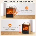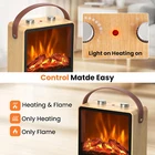 Realistic Fake Fireplace: Electric fireplace heater is heating and fireplace in one. It provides you warmth with dust-free and smoke-free 3D dynamic flame, brings you a pleasant and cozy ambience. 4 Personalized Modes: This electric space heater offers four modes: Flame with 750W Heat; Flame with 1500W Heat; Flame without Heat; Heat without Flame. It fits different indoor scenes, such as living room, bedroom and office. Portable & Durable: This space heater fireplace is portable and lightweight. Featuring a high-quality belt carry handle, no matter you want to use it in your living room, dining room or bedroom, this portable heater can be easily transported. Energy Efficient: Thermostat control of this small electric fireplace will turn the fake fireplace heater off when it already reaches the preset temperature. It automatically turns on again when it drops below the adjusted temperature. Double Safety Protection: Sensitive tip-over switch ensures that the mini fireplace heater auto shuts off if it's accidentally knocked over. Built-in overheat protection sensor auto shuts the portable heater off when the internal heat reaches 212°F or above to prevent potential hazards. Product Description 50W/1500W Heating The advanced PTC ceramic heating technology helps the portable heater to heat up faster and distribute heat more evenly. Carry whenever needed Easy and safe to carry this fake fireplace heater from one room to another using the leather handle. Energy Efficient With the sensor button, the heating function of electric space heater will automatically switch on/off to heat up to the set temperature. Realistic 3D Flame Effect The view of mini fireplace is not only very beautiful, but also allows you to avoid the danger of real flame.