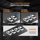 Free eBay listing template designed by dewiso.com Electric Garage Heater Adjustable Angle & 3 Heat Settings: This garage heater has adjustable louvers and variable mounting angle to direct the air output. Its maximum BTUs of 17,060 is powerful enough to heat a large area up to 592 square feet. Power ranges from low to high, 3,000 watts, 4,000 watts, and 5,000 watts to meet your different needs Space Saving Design: This is an ideal compact garage heater with almost industrial-strength power. It can be stably placed on the ground or mounted on a wall or ceiling, which is very suitable for factories,workshops and warehouses to save precious space Safe & Sturdy Structure: Our electric garage heater is made of heavy-duty steel material, which is very strong and durable, and has a long service life. In addition, the heater for workshop is ETL certified to ensure your safe use Thermostat & Overheat Protection: Our garage heater is equipped with a built-in thermostat. You can adjust the thermostat to suit your needs and preferences. And a built-in sensor switches the device off automatically if it overheats Hardwired Installation: You will need an electrician to do this safely. The garage heater must be grounded and hardwired to a properly sized current protection circuit breaker in accordance with the (US) National Electric Code and local codes Note: This heater does not come with a power cord. Please switch off the circuit breaker to turn the garage heater off. Product Description Free eBay listing template designed by © dewiso.com .
