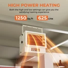HIGH PERFORMANCE & ADJUSTABLE TEMPERATURE: The 240V garage heater boasts a maximum BTU of 25590, a power range of 5630-7500 watts, and a temperature range of 45-99℉ (press the Mode button twice to adjust), providing ample heat for large areas up to 1,250 square feet. Operating at just 58 decibels, this electric heater ensures minimal noise disturbance, allowing you to focus on your tasks with ease. Whether it's your garage, workshop, or any other sizable space, this heater keeps your room warm and comfortable at all times STURDY AND PRACTICAL: Crafted from thick gauge steel, this electric garage heater is robust, heat-resistant, and highly durable. The hard-wired garage heater offers two installation methods—top and wall installation—to minimize floor space usage. Additionally, the electric heater for garage features four installation angle adjustment options and a flexible blind adjustment function for precise air distribution THOUGHTFUL DESIGN: The garage heater comes with an ECO energy-saving mode and an intelligent adjustment working mode, effectively reducing energy consumption. Moreover, the 7,500-watt electric garage heater includes a 9-hour timer function and a remote control for convenient presetting and remote operation SAFETY AND EXCELLENT CUSTOMER SERVICE: Equipped with an overheating protection mechanism and certified by ETL for safety, this garage electric heater features a sensitive temperature sensor that automatically shuts off if it exceeds the safety range, ensuring your well-being HOW TO USE: After installing the garage space heater and pressing the POWER button, Press the MODE button (the "finger" icon on the remote control) once to adjust the power using the "up"/"down" buttons; press the Mode button twice to change the temperature, and three times to set the timer duration.For more detailed instructions, see the instruction manual NOTE: 240V hard-wired electric garage heaters without plugs require professional installation by an electrician to ensure they are properly grounded and hardwired according to safety standards such as the National Electrical Code and local regulations, This heater does not come with a power cord