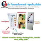 Home Electronic Component Chips Sensor Arduino Module Raspberry Pi Electric fan Universal Repair Board Circuit Board with Controller Remote Control Popular Popular Product Introduction Product features: The universal maintenance board for electric fans is suitable for various types: wall fans, tabletop fans, Hongyun fans, floor fans, mechanical boards, computer boards, modification and maintenance Multiple controls: timed shaking of head, natural wind, sleep wind Control panel by wire, with built-in double-sided adhesive and receiving head inside Powerful and diverse control methods, various natural wind regulation timing settings, shaking head control; Suitable for various ceiling fans, table fans, floor fans, wall fans, mechanical control, computer control board maintenance and modification! Easy and convenient installation, reliable quality, fast wiring and successful modification Product parameters: Input voltage: 110V-240V 50Hz 60Hz Output voltage: 110V-240V 50Hz 60Hz Output power: four outputs, single 100W, total power 400W Receiving method: infrared Reception distance: 6-10 meters Remote control: No. 7 battery (not included in the product) Main board: 86mm * 40mm * 17mm Panel size: 88mm * 40mm * 16mm Remote control size: 105mm * 4mm * 15mm Product list; 1X motherboard 1X remote control (without battery) 1X controller (with adhesive backing) instructions: This fan control board is suitable for the modification and maintenance of household floor fans, shaking head fans, table fans, wall fans, Hongyun fans, and other electric fans. It can convert manual fans into remote controlled fans, achieving remote control on/off, timing, speed regulation, and shaking head; The modification is very simple, just wire according to the drawings, which are marked with wiring labels and colors, making it powerful and worth having. matters needing attention: *Please check for accuracy before powering on for testing! The universal board has nothing to do with the speed of the original motor, it only controls the power supply of the coil! If the speed is slow, please directly supply power to the motor to test the motor speed. Slow speed is usually due to capacitance or motor aging!!! *The universal board and the original mechanical buttons or other control methods cannot be used simultaneously!!! Only the control panel and remote control that come with the universal board can be used. A single remote control is only compatible with the board and not compatible with other fan motherboards! Control operation instructions: 1. Shutdown status: After power on, the buzzer sounds once and enters standby mode 2. Wind speed adjustment: Press the "On/Wind speed" button to operate the motor at low speed by default. Press this button again to cycle through the settings of high, medium, and low speeds. 3. Timing setting: Press the "Timing" button in working mode, the default is 0.5H. Continuously pressing 0.5H · 1H · 2H · 4H will light up the timing indicator light, and the sum of the light up times will be the timing time. Up to 7.5 hours, 1 hour is 1 hour. 4. Head shaking setting: When turned on, press the "Head shaking" button once to enter the head shaking state. Press again to turn off the shaking head function, which can only be used for fans with shaking head synchronous motors. 5. Wind (natural wind): Only the remote control has this function. Pressing the "Wind" button will automatically adjust the fan speed. Press again to exit. In natural wind mode, pressing the "Wind Speed" button can change the natural wind intensity. The wind speed indicator light flashes Payment Shipping Refund Payment We accept PayPal only. But we only Accept your Ebay Address ,Please Make sure it's 100% right. Payment must be received in 5 business days of auction closing. Please leave note for your special request (e.g. Colors or Size) in PayPal when you pay the order. Any special request cannot be accepted after 24 hours of payment, because most of orders will be processed instantly and same day dispatched. Shipping We maintain high standards of excellence and strive for 100% customer satisfaction! Feedback is very important to us. We request that you contact us immediately BEFORE you give us neutral or negative feedback, so that we can satisfactorily address your concerns. Refund All package need to wait 30 days (US only n eed 7-10 days) , Please take care it.Less than 30 days,we can't take a refund . If the item is defect when you receive it or you are not satisfied with it, please return it within 14 days for a replacement or money back. But the items must be back in factory condition. Please contact us and double check the return address before you return it. If is item is defective in 12 months, you can return it to us. We will send you a new replacement after receiving the defective item. Home Electronic Component Chips Sensor Arduino Module Raspberry Pi Electric fan Universal Repair Board Circuit Board with Controller Remote Control Product Introduction Product features: The universal maintenance board for electric fans is suitable for various types: wall fans, tabletop fans, Hongyun fans, floor fans, mechanical boards, computer boards, modification and maintenance Multiple controls: timed shaking of head, natural wind, sleep wind Control panel by wire, with built-in double-sided adhesive and receiving head inside Powerful and diverse control methods, various natural wind regulation timing settings, shaking head control; Suitable for various ceiling fans, table fans, floor fans, wall fans, mechanical control, computer control board maintenance and modification! Easy and convenient installation, reliable quality, fast wiring and successful modification Product parameters: Input voltage: 110V-240V 50Hz 60Hz Output voltage: 110V-240V 50Hz 60Hz Output power: four outputs, single 100W, total power 400W Receiving method: infrared Reception distance: 6-10 meters Remote control: No. 7 battery (not included in the product) Main b