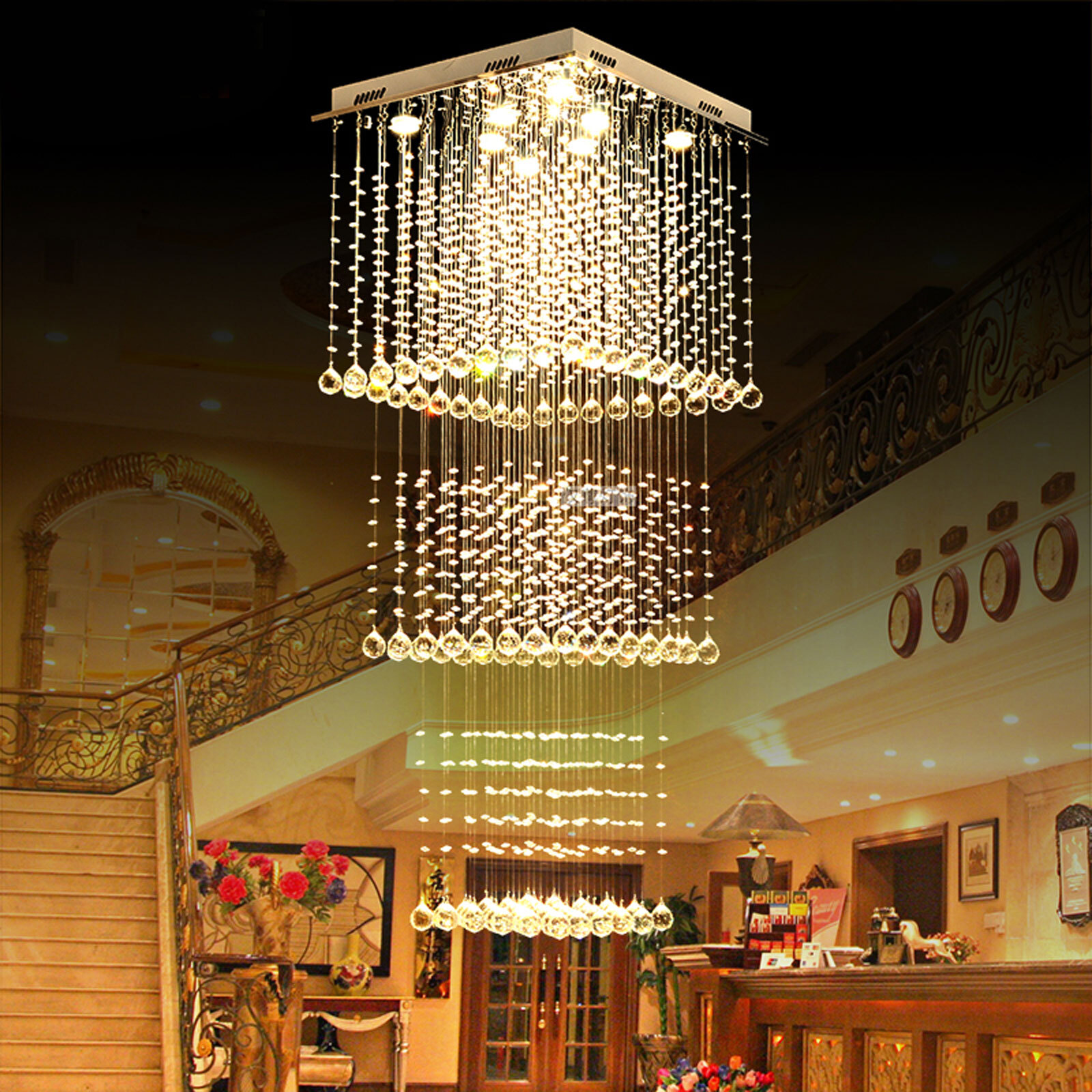 Specification: Category: Lighting Style: Crystal, Modern / Comtemporary Recommended Room Fit: Living Room, bedroom, hotel lobby Recommended room size: 15-35 ㎡ Materials: metal, K9 clear crystal Dimensions: L60cm *W60cm *H200cm Lamp Type: GU10 Lighting Direction: Ambient Light Delivery included or Not: include light bulb Voltage: 110-240V Light Size: L60 x W60 x H200cm/23.6*23.6*78.7inch Net Weight: Appr. 15kg Gross Weight: 16kg Package Size: 68*68*20cm K9 Luxury Crystal Pendant Lamp Ceiling Lighting Chandelier Raindrop Lobby welcome~ Specification: Category: Lighting Style: Crystal, Modern / Comtemporary Recommended Room Fit: Living Room, bedroom, hotel lobby Recommended room size: 15-35 ㎡ Materials: metal, K9 clear crystal Dimensions: L60cm *W60cm *H200cm Lamp Type: GU10 Lighting Direction: Ambient Light Delivery included or Not: include light bulb Voltage: 110-240V Light Size: L60 x W60 x H200cm/23.6*23.6*78.7inch Net Weight: Appr. 15 kg Gross Weight: 16kg Package Size: 68*68*20cm Features: ※ Dimmable option, bright, comfortable light, reduce eye fatigue, protect eyesight ※ Luxury shape, beautiful and elegant ※ LED light source, long life, energy saving, low heat, healthy environment, high color rendering ※ Applicable to different environments such as hotel lobby , living room, bedroom, restaurant etc Application: living room,bedroom,dining room,hotel lobby Package : 1* Ceiling Light Payment Delivery details Terms of sales About us Contact us Payment We accept ebay payment 。 Fees such as import duties, taxes are not included in the item price or shipping costs. These charges are the buyer's responsibility. Delivery details Shipping: 2-9 working days to: USA Terms of sales We maintain high standards of excellence and strive for hundred percent customer satisfaction. Feedback is very important to us. We hope that you contact us immediately before you give neutral or negative feedback, so that we can address your concerns. It is impossible to address issues if we do not know about them! About us Your satis faction is our ultimate goal. We work hard to earn your trust and future business. Our certified technicians have tested each item before shipping. The unit comes with 1 year limited warranty on all manufacturing defects. a) If you receive a defective item, you may return it or ask for a discount. Please contact us within 14 days after you receive the package. b) What you returned must be intact and in its original packaging as re? u. Customer is responsible for shipping costs of the returned item. c) We will cover the cost of shipping back t with the shipping rate indicated in the registration page. We will send you a new unit or refund the full payment you paid. Thank you. Contact us Business Hour Business Hour: Monday To Friday: 8:30 AM to 5:00 PM (Beijing China time) Due to time zones, our reply to your questions may not be immediately. But within above working time, we will reply your email within 24 hours. If it's non-workdays, please kindly be patient and wait till Monday. Please contact us with ebay message. Please feel free to contact us if you have any questions. Monday To Friday: 8:30 AM to 5:00 PM (Beijing China time) Due to time zones, our reply to your questions may not be immediately. But within above working time, we will reply your email within 24 hours. If it's non-workdays, please kindly be patient and wait till Monday. Please contact us with ebay message. Please feel free to contact us if you have any questions. Brand CNCEST * Feature * *Durable Material*Beautiful Appearance*Easy to Install* 1.Feature Durable Material,Good quality Type Crystal Pendant Lamp Category Lighting Style Crystal, Modern / Comtemporary Recommended Room Fit Living Room, bedroom, hotel lobby Recommended room size 15-35 ㎡ Materials metal, K9 clear crystal Dimension L60cm *W60cm *H200cm Lamp Type GU10 Lighting Direction Ambient Light Delivery included or Not include light bulb Voltage 110-240V Net Weight Appr. 15kg Gross Weight 16kg Package Size 68*68*20cm