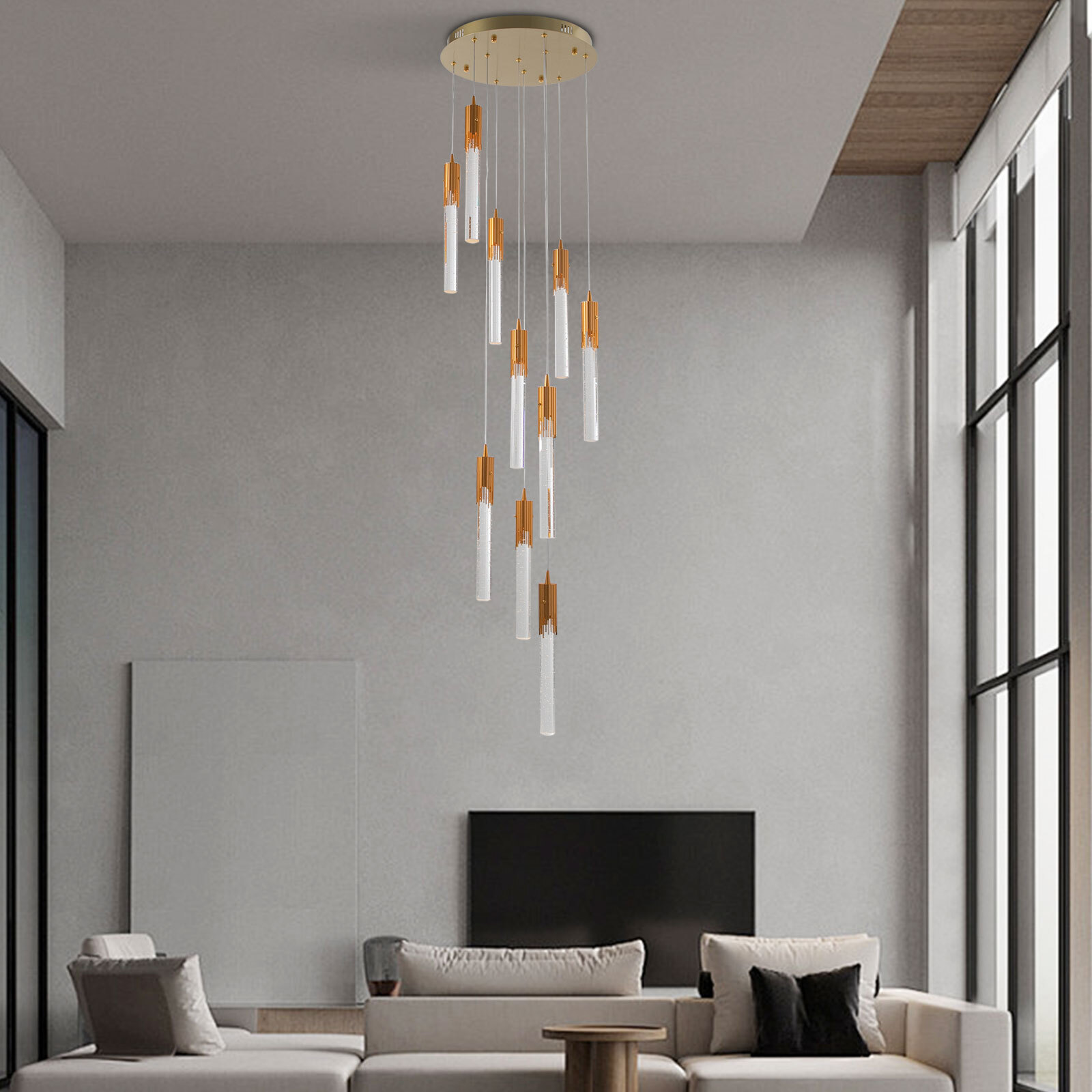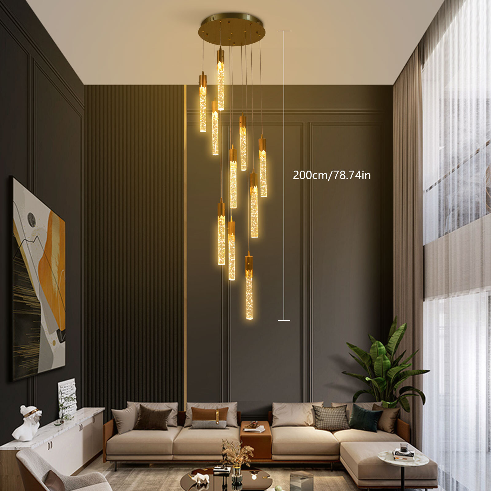 Application Its applicable area is 53.8-107.64ft ², and the applicable height is about 8.2-19.7ft. It is suitable for hotels, attics, foyers, basements, cafes, bars, clubs, libraries, and restaurants. Specifications Material: Iron, Crystal Color: Gold, Clear Style: Modern Assembly Required: Yes Mounting Type: Ceiling Mount Indoor/Outdoor Usage: Indoor Light Fixture Form: Chandelier Power Source: Corded Electric Light Source Type: LED (Included) Number of Lamp Bodies: 10 Voltage: 110-240V Power: 30W Efficiency: E Light Color: White/Neutral/Warm Color Temperature Range: 3000K-6500K Light Applicable Area: 5-10m²/53.8-107.64ft ² Installation Space Height: About 2.5-6m/8.2-19.7ft Lumen Value: 3000LM Color Rendering Index: 80 10-head Adjustable Long Attic Chandliers, Pendant Light with Crystal Lamp Strips Description The crystal chandelier with 10 heads of column-shaped crystal pendants is not only an excellent tool to light up your room but also embellish your room with gorgeous and romantic elements. It combines simplicity and practicality, adding a touch of refinement and charm to your attic decor. Key Features High-quality Material: The iron and crystal materials make the product sturdy, wear-resistant, and corrosion-resistant , ensuring a long service life. Eye-catching Appearance: The 10 heads of column-shaped crystal pendants dangle down in a spiral arrangement to dress up your space beautifully and elegantly. Especially when the night falls and the lights are on, the crystal pendants with irregular bubbles distributed inside can refract the colorful light, making your ceiling like a bright starry sky. Adjustable Design: You can adjust the height and appearance of the chandelier by adjusting the length of the cord(6.56ft long) for greater adaptability and displaying your tastes. Excellent LED Light Source: With 80 color rendering and 3000- lumen value, the LED light source is energy-saving, has a longer service life and can protect your eyes as it does not strobe or glare. The three light colors( warm, neutral, and white ) with a c olor temperature range of 3000K-6500K fully meet your usage needs in different scenarios, making it more convenient. Safety Protection: It provides constant current protection, overload protection, low voltage protection, and short circuit protection to ensure the long service life and safe use of the product. Assembly in a Breeze: The complete accessories, simple structure, and a clear English installation diagram allow you to install it effortlessly in a short time. Ideal Gift: This product is practical and high-quality and can be used as a housewarming, birthday, or holiday gift for parents, friends, and loved ones. Protective Package: To prevent the product from being damaged during transportation, we packed it with anti-collision foam to protect your products to the maximum extent possible. Details Solid Base: The iron base with a diameter of 15.7 inches increases the stress area and ensures the safety of the light fixture without easily falling off. Smooth Edges: The smooth and burr-free edges enhance the beauty of the product and better care for your skin when installing and cleaning it. Protective Gloves: They can protect your hands from getting scratched during installation. Application Its applicable area is 53.8-107.64ft ², and the applicable height is about 8.2-19.7ft. It is suitable for hotels, attics, foyers, basements, cafes, bars, clubs, libraries, and restaurants . Specifications Material: Iron, Crystal Color: Gold, Clear Style: Modern Assembly Required: Yes Mounting Type: Ceiling Mount Indoor/Outdoor Usage: Indoor Light Fixture Form: Chandelier Power Source: Corded Electric Light Source Type: LED (Included) Number of Lamp Bodies: 10 Voltage: 110-240V Power: 30W Efficiency: E Light Color: White/Neutral/Warm Color Temperature Range: 3000K-6500K Light Applicable Area: 5-10m²/53.8-107.64ft ² Installation Space Height: About 2.5-6m/8.2-19.7ft Lumen Value: 3000LM Color Rendering Index: 80 Adjustable Height: 50-200cm/19.7-78.7in Cord Length: 2m/6.56ft Base Diameter: 40cm/15.7in Each Lampshade Length: 36cm/14.17in Package Included 1* Crystal Chandelier 1* English Installation Diagram 1Pair* Protective Gloves All Accessories for Installation Notes The height of the space where it is installed is at least 8.2ft. Please check the product size before ordering to make sure it fits your room. Please wear the provided gloves and avoid scratching the surface of the lamp and the electric wire when installing. Please make sure that the power supply has been cut off before installation, and conduct a power test before installation. Please install it by a licensed electrician if necessary. Please allow the slight color difference caused by the shooting light and 1-3cm error due to manual measurement, and make sure you do not mind before you order. Payment Delivery details Terms of sales About us Contact us Payment We accept ebay payment 。 Fees such as import duties, taxes are not included in the item price or shipping costs. These charges are the buyer's responsibility. Delivery details Shipping: 2-9 working days to: USA Terms of sales We maintain high standards of excellence and strive for hundred percent customer satisfaction. Feedback is very important to us. We hope that you contact us immediately before you give neutral or negative feedback, so that we can address your concerns. It is impossible to address issues if we do not know about them! About us Your satis faction is our ultimate goal. We work hard to earn your trust and future business. Our certified technicians have tested each item before shipping. The unit comes with 1 year limited warranty on all manufacturing defects. a) If you receive a defective item, you may return it or ask for a discount. Please contact us within 14 days after you receive the package. b) What you returned must be intact and in its original packaging as re? u. Customer is responsible for shipping costs of the return