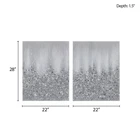 The Glimmer Heavily Embellished 2-piece Canvas Wall Art Set brings a touch of glam to your home decor. This 2 piece canvas wall art set features a gradient abstract design in metallic hues for a striking modern look. 100% hand-brushed with real rock and stone embellishments add texture and dimension, while the silver glitter finish adds a beautiful sheen and luster. Each piece is finished with a cardboard backing for additional structure and 2 D-rings on the reverse making it easy to hang. Give your home a luxurious update by adding the perfect amount of sparkle, with our Glimmer Art Piece Set. Due to hand embellishment of natural rock and stone; colors and glitz may vary slightly from image making each piece unique. Spot clean only; this set includes two pieces with each piece measuring 22x28". Panel Size - 2 Pieces of Canvas: 22"W x 28"H x 1.5"D (2) The Silver Glimmer Hand Embellished Canvas 2 Piece Set brings a touch of glam to your home décor. 100% hand-brushed with real rock and stone embellishments add texture and dimension, while the silver glitter finish adds a beautiful sheen and luster. PLACEMENT - This wall art has a flexible placement.The 2 panels are great to hang together or individually to accent and decorate any living space CARE - Spot clean only do not use bleach or any harsh chemical solution to maintain original color quality