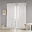 Simple and feminine in all the right ways, Madison Park Rosette Tab Top Solid Window Panel Embellished with Flower offers a gorgeous one-of-a-kind look to your home. This solid white panel features a tab top finish and beautiful removable floral pins that give your room a decorator’s touch. The lightweight faux linen semi-sheer fabric filters the perfect amount of light into your home, while creating a soft airy feel - for the perfect shabby chic update to your decor. Window panel is machine washable for easy care, while floral pins are spot clean only. Fits up to a 1. 25” diameter rod. Madison Park Rosette Floral Embellished Cuff Twist Tab Top Window Panel offers a gorgeous one-of-a-kind look to your home. This soft voile panel provides a simple and airy update to your décor. The DIY cuff twist tab top creates beautiful and delicate folds for a stylish decorator's touch. Fits up to a 1.25” diameter rod. 1 Window Panel: 50"W x 84"L,As shown in image - Need to purchase 2 curtain panels for each window for standard coverage. Care instructions: machine washable