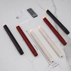 Description flameless candles Crafted from Real Wax: These battery operated taper candles are expertly made from specially processed wax, featuring authentically melted edges and black wicks to emulate genuine candles. Each piece is sanded and polished by hand, offering an exquisite appearance superior to real candles, without the concerns of smoke, dripping wax, or other risks. Remote Timer Dimmer: Enido has customized the functions you need. (1). 2 light modes, simulate flickering flame light or steady light. (2). Manage our battery candles easily with the included 10-key remote control, perfect for placing them in high or difficult spots. (3) Create the warmest lighting effect through the dimmer to make it brighter or softer depending on the mood you looking for. (4). Choose your desired setting and let the auto-timer cycle them on and off daily at set times. Lifelike 3D Flame: The design of a 3D led bead allows the realistic taper candle flame have no defects from every angle. These amazing LED taper candles are perfect for Christmas, Halloween, sconces, fireplaces, dining tables, weddings, bathrooms, or bars. Take your home decor to the next level and evoke a romantic ambiance with these enchanting and safe candles Good Gift: Powered by 2 AAA batteries provide 30+ days working time, (batteries are not included), With the size of real traditional taper candles and round shaped bottoms. Each package contains 6 pcs taper candles, 2 pcs 10-key remote. Our battery candles won't be damaged if knocked over, ensuring easy clean-up and continued use. Eliminate the risk of fire and enjoy the safety and convenience of our electronic flameless candles.