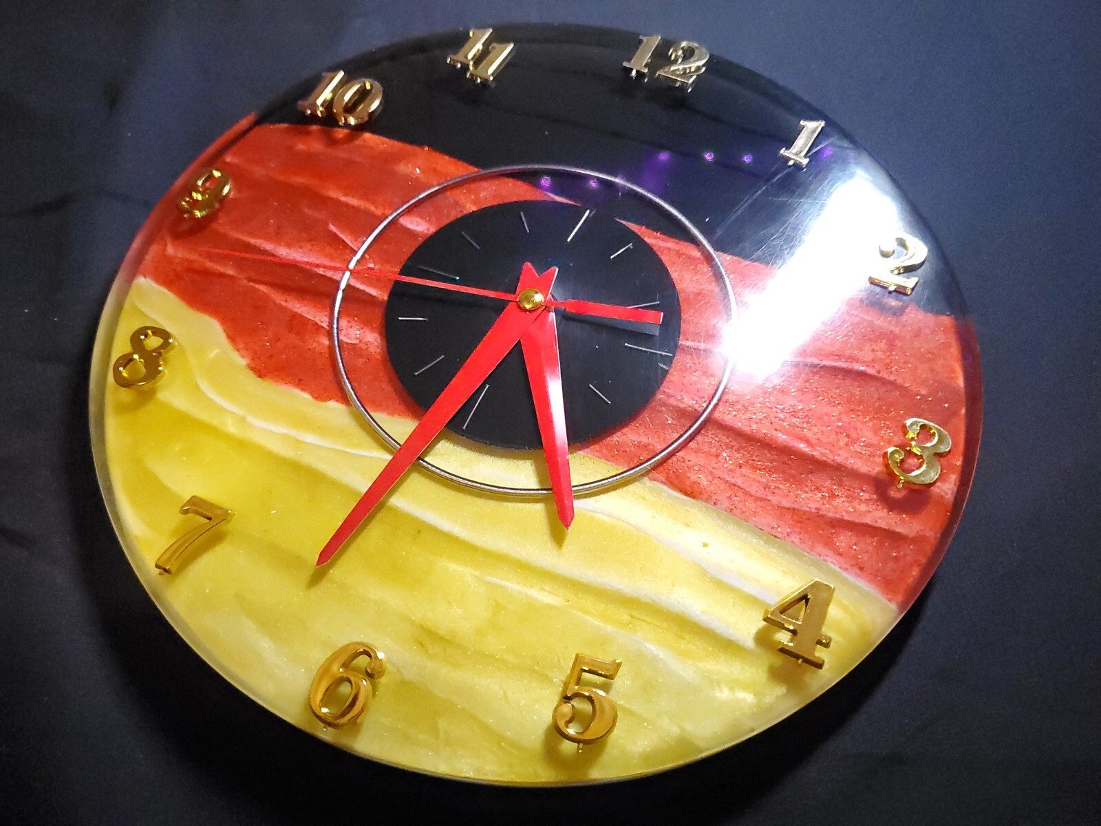 Embrace the essence of German pride with this unique 10.25-inch round wall clock, a statement piece that combines functionality with a patriotic theme. Crafted with a blend of aluminum, epoxy, and wood, this clock ensures durability and an elegant finish. The quartz movement guarantees accurate timekeeping, while the silent operation feature eliminates the annoyance of ticking sounds. The clock showcases a classic analog display, complemented by a moon dial that adds a touch of elegance to your decor. Its special edition status and distinctive flag theme make it an ideal addition to any room, reflecting a love for German heritage. Complete with a 12-hour display and a seamless design, this timepiece is battery-operated for easy placement anywhere from your living room to your office.