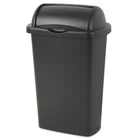The Sterilite 13 Gallon Roll-Top Wastebasket features a lid that rolls up, stays open and returns closed, all with minimal effort. The large opening allows for disposal of oversized items while leaving the lid rolled up. The design coordinates with any kitchen décor and this wastebasket features an easy-to-clean textured surface. It accommodates a standard 13-gallon trash liner or it can be used to collect recyclable material. This Wastebasket is ideal for all areas of the home including kitchen, garage, basement or even the office. It's durable design will hold up to regular day-to-day use and confidently conceal contents. The overall assembled dimensions of this item are 18 3/8" L x 12 3/8" W x 28 3/8" H. Sterilite Adult 13 Gal. Roll Top Wastebasket Black: Outside Dimensions: 18 3/8" x 12 3/8" x 28 3/8" Large 13 Gallon capacity makes this the ideal size for kitchen use Single unit option Classic color to complement all décor - Black The Sterilite 13 Gal RollTop lid opens with a touch and stays open for easy disposal Lid rolls up, stays open and returns closed with minimal effort Coordinates with any kitchen décor Easy-to-clean textured surface Accommodates a standard 13-gallon trash liner Ideal for use in the Kitchen, Bathroom, Bedroom, Dorm Room, Mudroom or Basement BPA-free and phthalate-free Made of easy to clean No batteries required