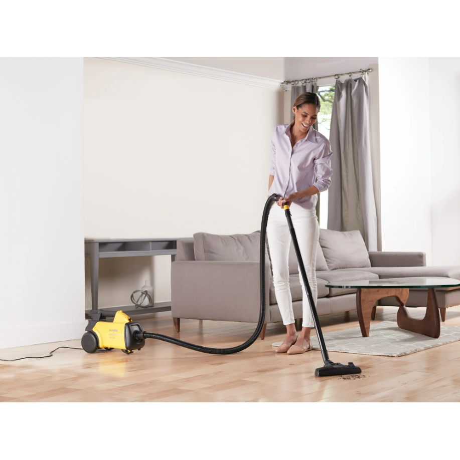 If you want shiny, spotless wood and tile floors, you’ll love using the Eureka 3670G Mighty Mite canister vacuum. This lightweight and portable canister vacuum features a 12-amp motor. That means you’ll have powerful suction at your disposal that easily removes tiny particles. This sleek and versatile Eureka model works effectively on both hard surfaces and carpet. Extra attachments help you clean those trouble spots such as cracks, crevices, and small spaces between baseboards and floors. The handy extension tools also work great when you want to get the cobwebs off of your ceiling. One of the features that people love about this state-of-the-art canister vacuum is that it is especially easy to use on stairs. This is due to the fact that it is so lightweight and simple to maneuver. Elderly people, teens, and even children will enjoy helping out around the house with this efficient machine. This Eureka Mighty Might vacuum cleaner will pick up those stubborn pet hairs that your furry friends leave on upholstery. Simply use the handy, effective upholstery nozzle to clean sofas, chairs, and rugs. The extensions are made from a thick plastic. The wand that holds the turbo nozzle in place is made out of sturdy metal. For such a light machine, this model is extremely durable. As with all canister vacuums, it's important to regularly change the bag in order to achieve optimal cleaning results. All of the bags in the MM series of bags should fit the Eureka Mighty Mite 3670G. It is also important to periodically check the filter on this model as well. Whether you're cleaning hardwood, carpets, linoleum, tile, or bare concrete, the 12-pound Eureka Mighty Mite 3670G canister vacuum is ideal. This machine also works wonders on your car upholstery, and it's light enough to easily maneuver throughout your vehicle. The extensive 20 foot power cord is especially helpful when you're covering a large area of floor space. The crush-resistant hose can stand the test of time. The surprisingly strong power of the blower and suction mechanism is impressive, especially for such a lightweight vacuum. For those unexpected spills when you're working on projects with your kids, Mighty Mite will work beautifully. For your regular day-to-day household messes, you'll find that this helpful vacuum consistently gets the job done right. Cleaning up your office, basement, or garage is a breeze with this powerful yet portable machine. These vacuums are designed to be used upright for picking up dust and debris. They can also be used for comprehensive general cleaning by inserting the different accessories that attach to them. Whether you're dealing with large or small messes, this vacuum cleaner will provide consistent results. This type of cleaner is easy to store, even in a small closet. It's a perfect tool for tough messes, regular daily use, or touch up jobs.