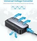 European Travel Plug Adapter, Universal 250-Watt Step Down 220V to 110V Voltage Converter to Europe, Worldwide Plug Adapter International Power Adapter with 2 USB+2 Type C for EU/UK/AU/US 【Universal Travel Adapter】 voltage converter can step down voltage from all countries voltage (100-240V~ 50/60Hz) to US voltage (100-125V~ 50/60Hz) with 1 EU power cord and 1 international plug adapter (UK/AU/US/EU), you could use American electronics in over 200 countries, such as United Kingdom, Continental Europe, Italy, Australia, Thailand, France, Germany, Dubai, China etc. 【No Fan & Ultra Quiet】 Using independent research and development of technology, converter has no fans to reduce noise when working at night, no interference to your sleep and also can prevent this product from being overheating. At the same time, pure sine wave technology enables to create same as household electricity and more stable current (up to 95% conversion rate) to avoid damaging your devices. 【7-IN-1International Power Adapter】Our travel adapter turns one foreign socket into 3 American AC outlets(250W Max), 2 USB-C(5V/3A 15W Max) and 2 USB-A(5V/ 12W Max) ports, which make it charge 7 devices simultaneously to meet your various charging needs for worldwide travel. Ideal for i, Samsung, other Cell , Laptop, Camera, Power Bank, Steam Deck, Hair curlers, Razors and more. 【Compact Size and Portable】This plug adapter with compact size ( inches) and feet detachable power cord, easy to slide in your bag without the bulk whilst small enough for not taking up extra space of your suitcase. It fits snugly into the wall outlet without falling, protecting your devices charge safely. It will be an excellent companion when you are on business or traveling. 【Safety SATISFACTION GUARANTEEd & Practical】It is made of 1382℉ fireproof material and built in surge protector, CE FCC certified, which greatly improves the durability and safety, a must-have choice for families while traveling. Protecting you and your devices from over-voltage, overload, over-current, short-circuit, over temperature and etc. (Note: Do Not Use Hair Dryers, Irons, Hot water pot and Other Appliances over 250 watts. When overloaded, it will flash blue and red light alternately. Just unplug the connected devices and press the switch to reset.)
