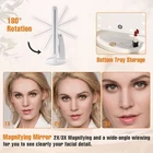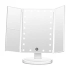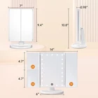 FASCINATE Trifold Vanity Mirror with Lights, Lighted Makeup Mirror 2X/3X Magnification, 21 LED Touch Dimming, Dual Power 180° Rotation Lit Beauty Table Mirror, Make up Mirror with Lighting Product Details Color: White Brand: FASCINATE MPN: 8541786307 UPC: 192030543210 EAN: 0192030543210 Brand: FASCINATE Room Type: Bedroom Shape: Trifold mirror Product Dimensions: 14"L x 9.4"W Frame Material: Acrylonitrile Butadiene Styrene (ABS) Is Discontinued By Manufacturer : No Product Dimensions : 14 x 1 x 10.06 inches; 1.76 Pounds Item model number : 8541786307 Batteries : 4 AAA batteries required. UPC : Manufacturer : FASCINATE Country of Origin : China TRIFOLD VANITY MIRROR WITH 2X 3X MAGNIFICATION: Tri-fold mirror design shows the full view of face makeup and hairstyle, 2X 3X magnifying mirror on the left panel for close up skincare, like eyebrow and eyeshadow. Non-flickering lighted makeup mirror with FCC, CE, and RoHS Certification. 21 LED MAKE UP MIRROR WITH LIGHTING: 21 LEDs Natural bright lights is good for makeup in the dark or little lit areas. Hold the ON/OFF button to dim or brighten up the mirror lights. 1X mirror is high definition light-up mirror! Compared with a non-lighted mirror, you will see much clearer how your face makeup looks. No makeup disaster! 180 DEGREE ROTATION: This table mirror with lights allows 180-degree rotation, easy to find a comfortable viewing angle for makeup application, no need to bend over. The detachable base makes it a portable travel mirror with light. You can bring it for the trip and enjoy sitting in front of the vanity top for makeup.