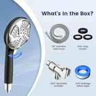 FEELSO Filtered Shower Head with Handheld, High Pressure Black & Chrome Product Details Brand: FEELSO Style: Art Deco Shape: Round Material: Acrylonitrile Butadiene Styrene Finish Type: Polished Setting Type: PowerSpray Installation Type: Wall Mounted Color: Black & Chrome Product Dimensions: 11.6"L x 4.9"W Hose Length: 60 Inches Number of settings: 7 Special Feature: Detachable Manufacturer: FEELSO Part Number: 72210BC Item Weight: 1.76 pounds Item model number: 72210BC Finish: Polished Special Features: Detachable Included Components: 1*Shower Head(built-in filter), 1*Shower Holder, 1*Stainless Steel Hose, 1*Teflon Tape, 1*Instructions Batteries Included?: No Batteries Required?: No Brand: FEELSO Style: Art Deco Shape: Round Material: Acrylonitrile Butadiene Styrene Finish Type: Polished 【What You Should Know About Bath Water】 Are you troubled by dry allergies skin, fragile tangled hair, or unpleasant odors from your bath water? As you can know, tap water contains residual chlorine, rust, heavy metals(lead, mercury, nickel, chromium) and other impurities. 80% of the US has hard water and about 70% of all community water systems in the US used chlorine. Research shows that our bodies absorb water not only through drinking but also significantly through the skin—over 65% during washing and bathing. If we use bath water contain residual chlorine for a long period of time, we may face various skin&hair problems. That’s why we need to filter out bath water. 【Upgraded Shower Filter System & Visible Filtration Effect】 Now you can find the perfect solution at FEELSO. This innovative shower head filter system can help improve those skin or hair issues. Equipped with a powerful filtration system, including premium KDF-55, advanced calcium sulfite, activated carbon, vitamin C, alkaline balls, clay ball and more, it effectively removes up to 99.9% of chlorine, fluoride, heavy metals, and other harmful substances that can lead to dry skin, frizzy hair, color changes or other skin&hair problems. You can find the perfect solution in skincare and haircare. Please find the CORRECT REPLACEMENT FILTERS in our store: B0DHZL69FJ 【High Pressure & Water Saving】 FEELSO upgraded filtered handheld shower head is designed with a unique internal structure design, which can bring you a full-coverage rain experience even at low water flow or low water pressure, completely wash away soap, shampoo, and conditioner without irritating skin. Not only that, the high output rain water flow allows you to rinse your body faster, saving water and shower time. You will get rid of all the troubles of traditional showers and enjoy a relaxed shower experience. 【6 Shower Spray Modes + Power Wash Modes】 Our high pressure handheld filtered shower head has 7 switchable settings (Rain, Massage, Mist, Rain & Massage, Rain & Mist, Water Saving and Power Wash modes). It meets various needs without complex settings for ease of use. Besides, do you tired of that disgusting soap scum and dried hair left behind after each shower? Now you can clean it all in seconds from up to 5ft away, without setting a foot in your shower room. Simply press the button on the back of the shower head to switch to power wash mode, quickly rinse off large areas and blast away the stubborn grime! Cleaning the shower room becomes quick and easy! 【Anti-clog Nozzles & 100% Watertight Hose】 Equipped with upgraded high quality self-clean and anti-clog nozzles, it prevents lime and hard water buildup, ensuring consistent water flow for a refreshing and relaxing shower. The inner core of shower hose is made of solid brass. The structure is tight and not easy to break. It is rigorously tested to ensure quality performance. You never need to worry about leaking on the hose or shower head, which offer you a great shower experience.