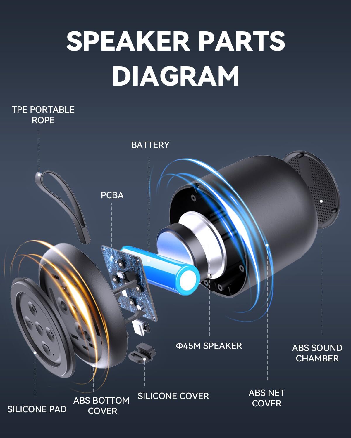 FIKDCMJ Bluetooth Speakers,Portable Wireless Speaker with 24H Playtime,IPX4 Wate Features: 【Clear&Delightful Sound】The subtle little body delivers a stunning sound. Well made for distortion-free sound, the Bluetooth speaker has loud highs, a crisp midrange and full bass to put you in the zone!The built-in microphone allows for hands-free phone calls 【Portable speaker】: 3 inches high, 2.76 inches in diameter; comes with a lanyard and Type-C(Fast charging) , Long-life battery technology provides the Bluetooth speaker 24 hours of sublime music for leisure, entertainment, office, indoor, outdoor, hiking, beach, etc. 【Bluetooth V5.0】: The Bluetooth speaker has the latest Bluetooth 5.0 chip built in to ensure fast pairing and a stable connection. The built-in microphone provides high quality and convenient hands-free calls. The speaker can automatically reconnect to the last device used. 【IPX4 Practical Waterproof】: Splashproof, Rainproof, Dustproof, Sandproof;Perfect for the beach, poolside, car, boat & golf cart.IPX4 rated speakers are resistant to mild water spray and splashing, but cannot be partially or fully submerged in water. 【Effortless Connectivity】Bluetooth 5.0 ensures instant pairing and maintains a strong connection up to 33 ft. The package includes 1 waterproof Bluetooth speaker, 1 Type-C charging cable, and a quick start guide. It's a perfect gift for music lovers and tech enthusiasts alike. Features: 【Clear&Delightful Sound】The subtle little body delivers a stunning sound. Well made for distortion-free sound, the Bluetooth speaker has loud highs, a crisp midrange and full bass to put you in the zone!The built-in microphone allows for hands-free phone calls 【Portable speaker】: 3 inches high, 2.76 inches in diameter; comes with a lanyard and Type-C(Fast charging) , Long-life battery technology provides the Bluetooth speaker 24 hours of sublime music for leisure, entertainment, office, indoor, outdoor, hiking, beach, etc. 【Bluetooth V5.0】: The Bluetooth speaker has the latest Bluetooth 5.0 chip built in to ensure fast pairing and a stable connection. The built-in microphone provides high quality and convenient hands-free calls. The speaker can automatically reconnect to the last device uséd. 【IPX4 Practical Waterproof】: Splashproof, Rainproof, Dustproof, Sandproof;Perfect for the beach, poolside, car, boat & golf cart.IPX4 rated speakers are resistant to mild water spray and splashing, but cannot be partially or fully submerged in water. 【Effortless Connectivity】Bluetooth 5.0 ensures instant pairing and maintains a strong connection up to 33 ft. The package includes 1 waterproof Bluetooth speaker, 1 Type-C charging cable, and a quick start guide. It's a perfect gift for music lovers and tech enthusiasts alike. eBay integration by