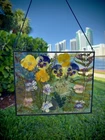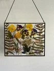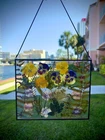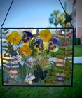 Pressed Violet frame, Dried Flower Art, hanging glass decor, Preserve bouquets, Floating frame art, Real flower wall art, Dried Pressed Flower Dimensions: 9 inches x 11 inches. I create all products in my home studio. This is handmade, made with love. This is an ideal gift for a nature lover. Beautiful real dried flowers behind glass. I choose plants that will retain their color for a long time, but since these are true dried varieties, you need to be aware that they may fade over time. This is because I don't dye them and it happens naturally. These beautiful dried flowers behind glass are a part of the summer garden in your home. Each herbarium is unique and one of a kind. The combination of herbarium and glass looks stylish and elegant and will be a wonderful gift and will perfectly decorate any interior. TECHNOLOGY: All frames are handmade from two pieces of glass and copper foil. All parts are assembled and carefully soldered. The frame cannot be opened and the contents cannot be changed. Handmade with love.