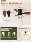 Return Policy Fast Delivery Trusted seller Farmhouse Flush Mount Ceiling Fans with Lights, 30" Small Caged Low Profile Ceiling Fans with Remote Control, Reversible Motor and 6 speeds for Outdoor/Indoor Bedroom, Bulb Not Included Product Description ?【Farmhouse& Caged Design】This 30" small ceiling fans with light features metal mesh cage lampshade,which will add a farmhouse& vintage style to your home. It contains ABS environmental friendly fan blades with a striking two-tone black and walnut finish. It not only cools your space efficiently but also adds a touch of elegance to any room. It's perfect for bedroom, kitchen, kidsroom, and any indoor/outdoor areas. ?【Whisper-Quiet Nighttime Comfort】The unique characteristics of DC motor, including high efficiency, reversibility, and precise control, make them an ideal choice for low-noise(under 30 dB), long-lasting, and easily controllable applications. This bedroom ceiling fan is perfect for creating a serene atmosp. ?【Year-Round Comfort and Energy Savings】With a reversible motor, you can keep your room cool in summer and reverse it in winter to promote indoor air circulation and warmth. This versatile flush mount ceiling fan with lights are not limited to a single season; It's your all-year-round solution! ?【Convenient Remote Control】Control multiple fan lights simultaneously with our user-friendly remote. Choose from 6 speeds and set a 1/2/4-hour timer for ultimate convenience. Adjust your fan's settings from the comfort of your couch, making it an ideal modern ceiling fan with light. ?【Buy with confidence】UL &FCC-certified for safety and backed by a 2-year customer support , you can purchase this rustic ceiling fan with confidence. Should you have any questions or concerns, our dedicated after-sales service is to assist you promptly. Your satisfaction is our commitment! Shipping Returns Payment Shipping Shipping is FREE to all addresses other than APO/PO boxes in the lower 48 states. All our stock ships from US-based warehouses. Shipped via USPS or UPS (depending on location and package weight) Unless stated otherwise, all orders will ship within 24-72 hours of your payment being processed. Check our feedback to see the great reviews of FAST shipping we offer. Returns Seller does not accept returns Payment We currently accept payment via eBay managed payments only. Once payment is cleared, we will dispatch your shipment within 1-3 business days. Please refer to the "Shipping" tab for more information regarding shipping speed to your destination.