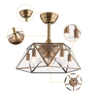 Description This 2-in-1 ceiling fan light allows you to feel the bright light and enjoy the coolness at the same time. It has six gears of wind speeds with a timing function to meet your daily usage needs. It can be integrated with different decoration styles and is ideal to create an excellent life and sleep environment to accompany you in all seasons. Key Features Stylish Exterior: The cylindrical lampshade, retro color scheme (Gold), and delicate lines make it very luxurious, and the water ripples on the tempered glass look like a flowing lake. It can be a good decorative piece to blend in with different decor styles and add color to your room. Great Durability: The lampshade is made of high-quality copper with a soldering process and tempered glass with high transparency, w Industrial Caged Ceiling Fan W/ Lights Farmhouse Ceiling Fan With Remote &Timing Description This 2-in-1 ceiling fan light allows you to feel the bright light and enjoy the coolness at the same time. It has six gears of wind speeds with a timing function to meet your daily usage needs. It can be integrated with different decoration styles and is ideal to create an excellent life and sleep environment to accompany you in all seasons. Key Features Stylish Exterior: The cylindrical lampshade, retro color scheme (Gold), and delicate lines make it very luxurious, and the water ripples on the tempered glass look like a flowing lake. It can be a good decorative piece to blend in with different decor styles and add color to your room. Great Durability : The lampshade is made of high-quality copper with a s oldering process and tempered glass with high transparency, which is heat-resistant , strong, durable, and not easy to deform. The fan blades are made of ABS, which has high strength, good toughness, and good formability, which can ensure a smooth surface and good gloss. High Safety: It is enclosed with 7 ABS blades hidden in the cage to avoid an accident caused by getting involved in the blades, so it's much safer than traditional fans to protect your family away from the fan blade's danger. 2-in-1 Function: The ceiling fan light has the function of fanning and lighting. It can not only illuminate you but also reduce heat, which can save you a lot of space. Adjustable Speed&Working Time: It has 6 gears of wind speed and you can choose low speed to enjoy the comfortable breeze or high speed to cool down quickly. Meanwhile, You can control its working hours in advance (1/2/4 hour), which can bring you great convenience. Easy to Clean : The smooth and flat shell, as well as the detachable fan blades, make this product easy to clean. You only need to clean it with a dry cloth, saving you lots of time and effort. Details Remote Control: It allows you to remotely control the timing, wind speed, etc, saving you lots of effort. Down Rods: This product is equipped with two down-rods with different lengths for different ceiling heights. Pure Copper Motor: It has stable performance, low-temperature rise, and low noise(About 40dB), providing a quiet working and sleeping environment. Meanwhile, there are a lot of heat dissipation holes on the motor shell, which can provide a good heat dissipation effect to ensure the stable operation and long service life of the motor. Application It is suitable for the living room, dining room, kitchen, study bedroom, small bedroom, conference room, and other places of 10-15㎡/107-161ft². Specifications Color: Gold Material: Copper, Tempered Glass, ABS Surface Treatment: Solder Process Style: Retro Motor Type: Pure Copper&Reversible Motor Number of Fan Blades: 7 Mounting Type: Ceiling Mount Rated Voltage: 85-265V Rated Power: 40W Power Source: DC Wind Speed Gears: 6 Timing: 1/2/4h Bulb Size: 5*E26/E27 (Not Included) Suitable Area: 10-15㎡/107-161ft² Electric Fan Design: Ceiling Fan Room Type: Bedroom, Living Room, Dining Room, Living Room, Kitchen Controller Type: Frequency Conversion Remote Control Efficiency: E Noise: About 40dB Base Diameter: 15cm/5.9inch Lampshade Size(L*H): 48*18cm/18.5*7.08inch Down-rod Length: 12cm/4.8inch, 25cm/9.8inch Package Included 1 * Ceiling Fan Light 1 *English Manual 1* Remote Control 1* 23A Battery All Accessories for Assembly Notes Please cut off the power supply when cleaning. The remote control is powered by a 23A battery (Included). Please note that the wall switch can only turn on the light or turn off the main power, and the ceiling fan can only be controlled by the remote control. This product does not include a light bulb. Please prepare five E26/E27 (Not Included) in advance. Please read the manual completely before installation and use, and pay particular attention to the safety instructions included. Please allow the slight color difference caused by the shooting light and 1-3cm error due to manual measurement, and make sure you do not mind before you order. Payment Delivery details Terms of sales About us Contact us Payment We accept ebay payment 。 Fees such as import duties, taxes are not included in the item price or shipping costs. These charges are the buyer's responsibility. Delivery details Shipping: 2-9 working days to: USA Terms of sales We maintain high standards of excellence and strive for hundred percent customer satisfaction. Feedback is very important to us. We hope that you contact us immediately before you give neutral or negative feedback, so that we can address your concerns. It is impossible to address issues if we do not know about them! About us Your satis faction is our ultimate goal. We work hard to earn your trust and future business. Our certified technicians have tested each item before shipping. The unit comes with 1 year limited warranty on all manufacturing defects. a) If you receive a defective item, you may return it or ask for a discount. Please contact us within 14 days after you receive the package. b) What you returned must be intact and in its original packaging as re? u. Customer is responsible for shipping co