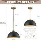 Return Policy Fast Delivery Trusted seller Farmhouse Pendant Lights Kitchen Island, 2 Pack Black and Gold Dome Pendant Light Fixtures With Metal Shade, Industrial Hanging Pendant Lighting for Dining Room Entryway Foyer, Height Adjustable Product Description Farmhouse & Industrial Design: Black dome pendant light fixtures feature black and gold dome shades that made of durable metal material, not easy to rust, and last for a longtime use.This industrial pendant light matches various home styles that ideal for kitchen island, dining room, bedroom,living room,farmhouse, entryway, hallway,corridor, over sink,restaurant, cafe, bar, club. Ideal Dimension:Dome shade Dia:11.8 inch,H:6.7 inch; Ceiling Canopy Dia:4.7 Inch;with an adjustable rope. The hanging height of this black kitchen pendant lights can be adjusted from a minimum height of 16.5 inches to a maximum height of 66.7 inches.You can adjust the height to your preference to create the ideal atmosp. BULB REQUIREMENTS: Our farmhouse pendant lighting for kitchen need E26 base bulb(MAX 60W,110-120V), compatible with a variety of incandescent, LED, CFL and halogen bulbs.When using dimmer and dimmable bulb can be dimmed(Bulbs and dimmers are not included). Easy Installation:The black kitchen pendant lighting over island is very wasy to install,all you need to do is connect the wires and install the bulbs, which only takes a few minutes.All instructions and mounting hardware are included in the package for a quick install. After-sale Service: This island lights for kitchen island includes a 1-year warranty. If you have any questions about our 2 packs pendant lighting for kitchen island, please contact us freely. We are committed to providing you with friendly and satisfactory service. Shipping Returns Payment Shipping Shipping is FREE to all addresses other than APO/PO boxes in the lower 48 states. All our stock ships from US-based warehouses. Shipped via USPS or UPS (depending on location and package weight) Unless stated otherwise, all orders will ship within 24-72 hours of your payment being processed. Check our feedback to see the great reviews of FAST shipping we offer. Returns Seller does not accept returns Payment We currently accept payment via eBay managed payments only. Once payment is cleared, we will dispatch your shipment within 1-3 business days. Please refer to the "Shipping" tab for more information regarding shipping speed to your destination.