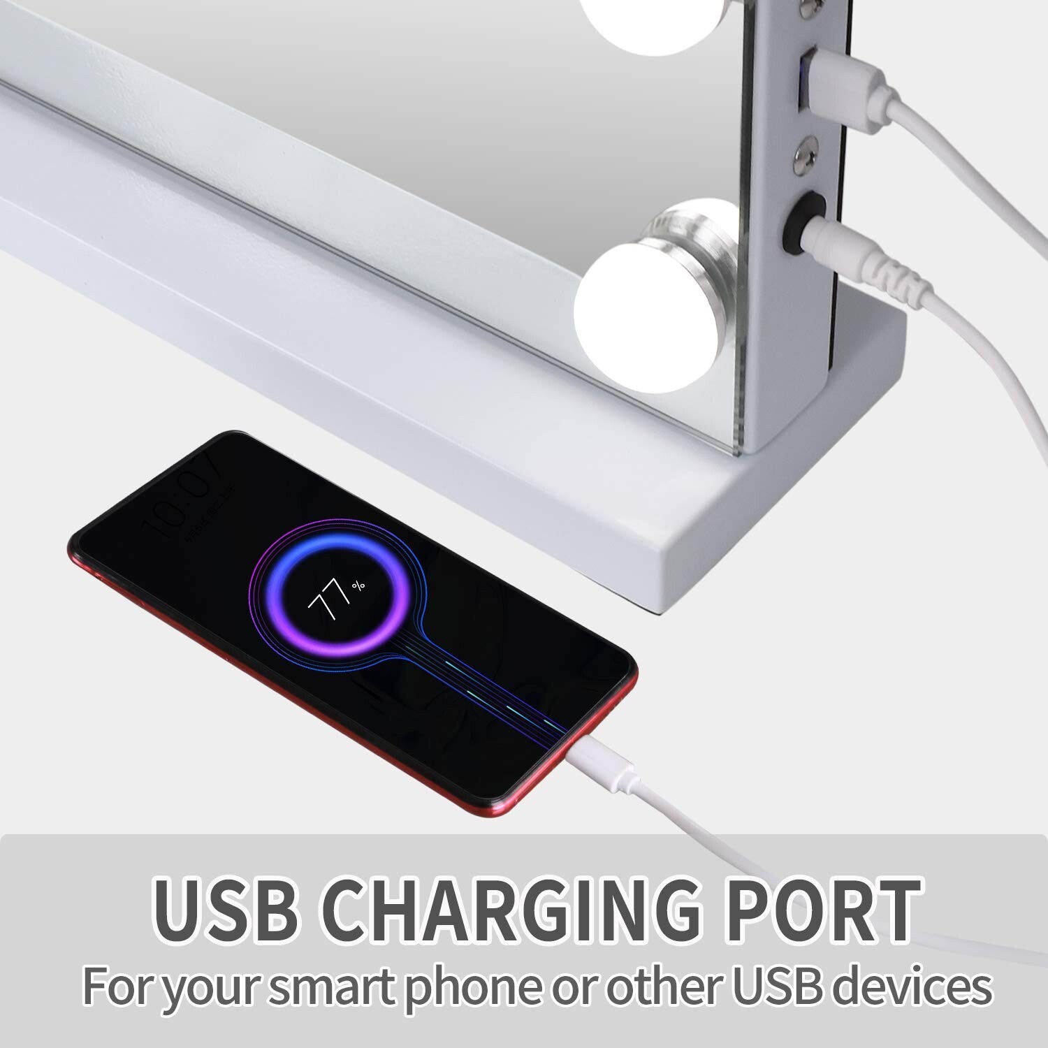 Fenair Large Vanity Mirror with Lights and Speaker Hollywood Lighted Makeup Mirror with Sturdy Base, 18 Dimmable LED Bulbs, 3 Light Colors, USB Charge Port Product Details Size: C-31.4"×23.6“-Bluetooth Brand: Fenair UPC: 688529113625 EAN: 0688529113625 MPN: Does not apply Brand: Fenair Room Type: Bedroom Shape: Rectangular Product Dimensions: 23.6"L x 31.5"W Frame Material: Metal Brand: Fenair Room Type: Bedroom Shape: Rectangular Product Dimensions: 23.6"L x 31.5"W Frame Material: Metal Style: Americana Mounting Type: Wall Mount Finish Type: Painted Surface Recommendation: bedroom Special Feature: USB charging, Lighted, Touch Sensor, Thin Frame Color: C-31.4"×23.6"-bluetooth Theme: makeup Specific Uses For Product: Makeup Number of Pieces: 1 Number of Items: 3 Material: Alloy Steel Frame Type: Unframed Item Weight: 9.64 Kilograms Assembly Required: Yes Frame Color: Chrome Magnification Maximum: 10 x Manufacturer: Fenair Size: C-31.4"×23.6“-Bluetooth UPC: 688529113625 Item Weight: 21.2 pounds Country of Origin: China Date First Available: January 6, 2021 Large Size:Compared to vanity mirrors of the same type, our mirrors have 31.5 x 23.6 inch large size which means you can get a whole view of your face and body while doing makeup, selfie, live brocast. And there is more space to put 18 high quality energy saving bulbs on the mirror, These bulbs will not get too hot even after long term work Speaker and Microphone: Fenair Vanity mirror with lights has two speakers on the back also has a microphone function. Easily connect to your phone, you can listen to your favorite music with the high quality speakers and answer a call while doing a makeup. Adjustable Brightness & 3 colors Lights: This hollywood vanity mirror surrounded by 18 pcs Dimmable LED bulbs, different light setting with Warm/Cool/Natural light, Simulate the lighting environment of various social occasions to help you find the most suitable makeup. Smart Touch Screen: This smart mirror with lights has 4 touch buttons on the front. They are easy to operate, you can turn on/off, change light colors, adjust brightness, cut songs and turn up/down volume. With its smart memory function, this LED desk mirror will get in to the same light mode when you turn on the mirror next time. Tabletop or Wall-Mounted: This Large Hollywood mirror comes with a sturdy removeable metal base, After a simple installation process, you can put it on countertable desk or floor, also there are 2 back holes, save a space for you.