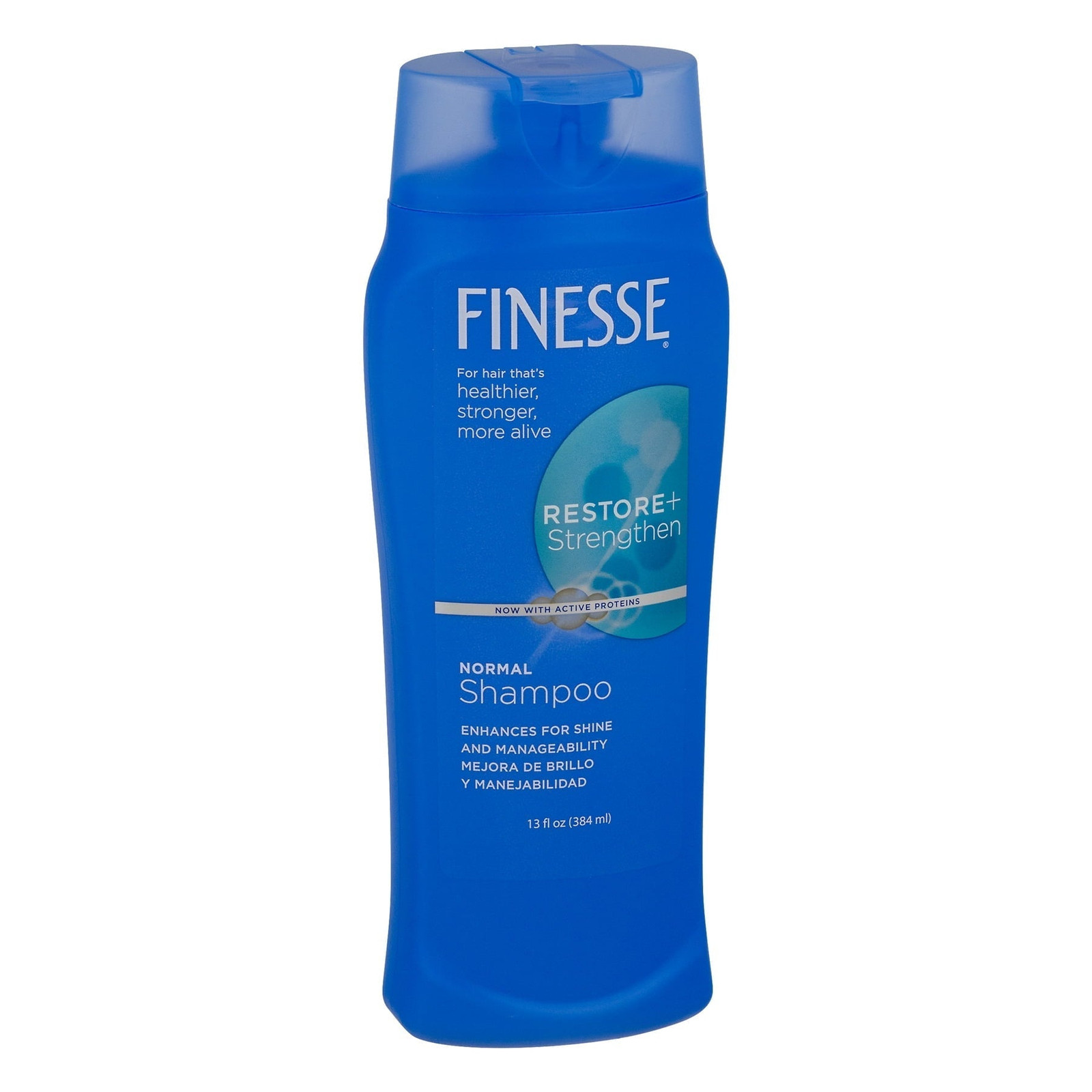 Finesse Self Adjusting Texture Enhancing Shampoo, Restore & Strengthen, Active Proteins, Unisex 13 Ounce (Pack Of 2) Finesse's unique self adjusting formula contains silk and soy proteins that protect the hair shaft with a coat of conditioning and shine. So, no matter how your hair is, the result is consistently beautiful hair. Get hair that’s healthier, stronger, and more alive with Finesse. Finesse Restore + Strengthen Normal Shampoo leaves hair clean, softer, and with an enhanced shine. This shampoo delivers more manageable hair that's easier to brush, comb and style. About this item ENHANCE SHINE AND MANAGEABILITY: Finesse Restore + Strengthen Normal Shampoo leaves your hair clean and looking shinier, softer, and silkier. This shampoo delivers more manageable hair that's easier to brush, comb and style. NOW WITH A HAIR REVIVING BOOST OF HYALURONIC ACID, CAMELLIA OIL & KERATIN: Revives hair with a beauty boost of ultra hydrating Hyaluronic Acid, Camellia Oil plus Keratin, the building block of hair. FOR HAIR THAT'S HEALTHIER, STRONGER, MORE ALIVE: Effectively revitalizes dry hair, damaged hair, dull hair, difficult hair or frizzy hair. Finesse products help transform hair so it looks and feels more alive. FINESSE HAIR CARE FOR WOMEN & MEN: Do you want healthy hair, silky hair, moisturized hair, or soft hair? Finesse products will help you improve the look and feel of your hair, while leaving it smelling fresh and clean with our signature fresh scent. Ingredients Water (Aqua); Ammonium Lauryl Sulfate; Ammonium Laureth Sulfate; Cocamide MEA; Silk Powder (Serica); Hydrolyzed Soy Protein; PEG-5 Cocamide; Fragrance; Ammonium Chloride; Carbomer; Dimethiconol; PPG-9; Guar Hydroxypropyltrimonium Chloride; Tetrasodium EDTA; DMDM Hydantoin; TEA-Dodecylbenzenesulfonate; Methylchloroisothiazolinone; Methylisothiazolinone; Mica (Cl 77019); Titanium Dioxide (Cl 77891)