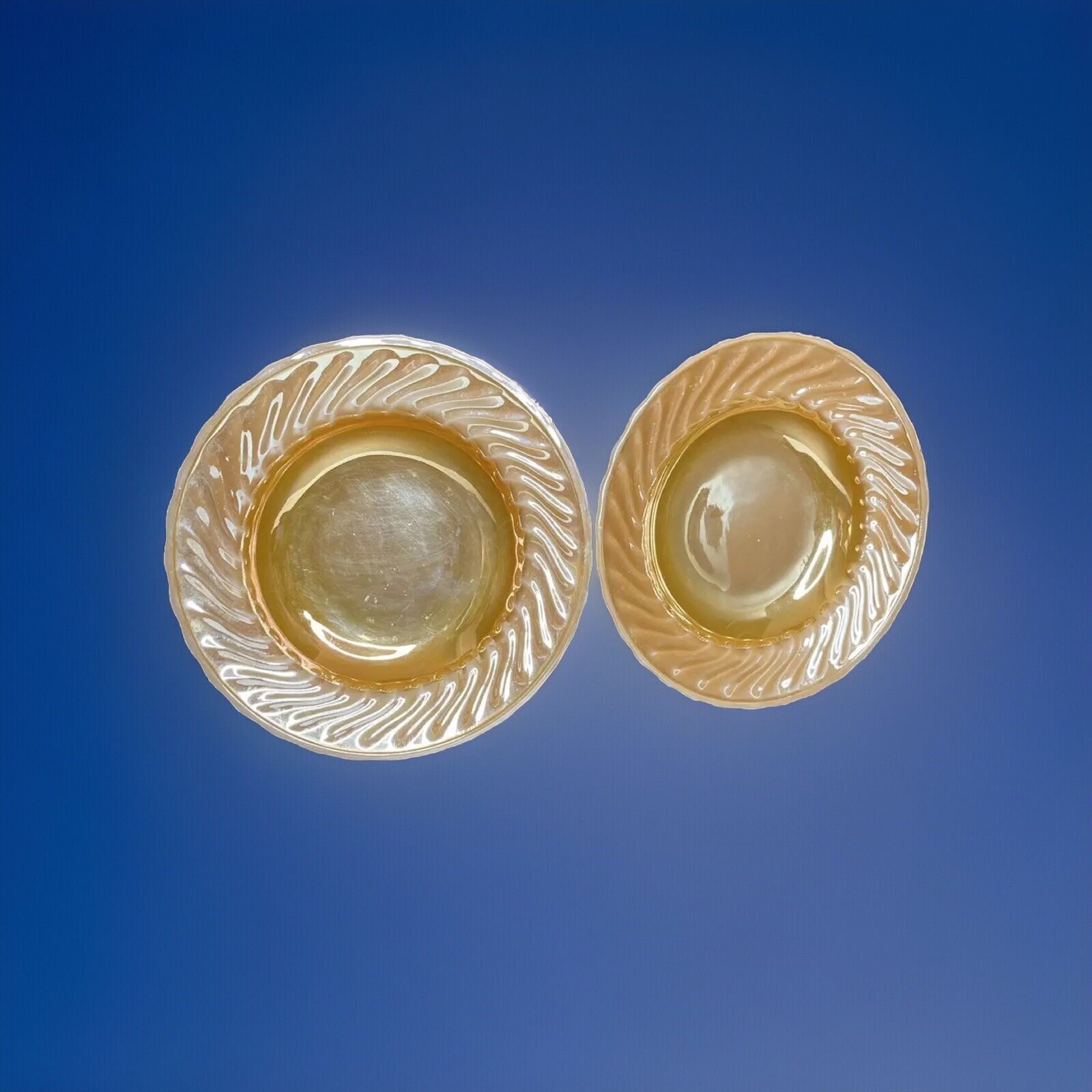 Anchor Hocking Fire King Oven Proof Peach Lusterware Swirl Soup Bowl x 2 9 inch diameter Good Condition - no chips or cracks - some wear from normal use - see pictures for details Please contact me with any questions questions