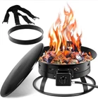 Firebowl Outdoor Portable Propane Gas Fire Pit Description Description: Our portable fire pit can bring you a more perfect outdoor camping experience! Our fire pit uses clean and environmentally friendly propane, which is safer to burn smokeless and odorless. Strong iron with black powder coating is rustproof and smooth for easy clean. The compact and portable design is easy to carry and store. It is your necessary partner for campfire parties, RV travels, family gatherings, and forest adventures. Features: Environmentally friendly propane fuel for safe use Burns without smoke, sparks and choking odors Sturdy iron construction with black powder coating for years of use Compact shape design to store easily Lava rock stones to bring you more beautiful flames of good heat Metal lid with fabric handle for easy carrying Including 10 ft hose with attached regulator Comes with tank stabilizer ring Round iron base to ensure stability Certified by CSA to allow use during most campfire bans Easy to assemble and maintain For outdoor use only, perfect for camping, backyards, terraces, beaches or caravan parks Specifications: Color: Black Product Dimensions: 19" x 19" x 11"(L x W x H) Material: Iron with Powder Coating Heat Output: 58,000BTU Net Weight: 19.5 lbs Package includes: 1 x Portable Fire Pit 4 x Lava Rock Stone 1 x Metal Lid 1 x Fabric Handle 1 x 10ft.Hose 1 x Tank Stabilizer Ring 1 x User Guide