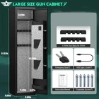 Fireproof Waterproof Gun Safe, Digital Quick Access - Brand New, Free Shipping About this item 【Quick Access Gun Safe for Shotguns】Developed and designed in the US, our gun safes feature 3D glowing digital buttons for faster unlocking which are zero errors, for quick access to firearms in an emergency. It can store 2 sets of digital passwords, and the code memory function ensures that your code will not be lost when the power is exhausted. Better protection for our property and privacy. 【Higher Level of Security Gun Safe Shotguns】The Kavey gun safe uses a total of 5 solid bolts in left and right. It made of low carbon alloy steel which is tamper-resistant and pry-proof. Unique anti-corrosion design to ensure long-term use. And the high-strength metal lock core ultimately prevents picking the lock. For added security you can bolt it to the ground, in closets or any other location, the holes are pre-drilled and expension screws are provided. 【Bigger and Deeper Shotgun Safe】Larger and deeper gun safe than similar products, can hold almost 3 long guns up to 51 inches long. The interior features a soft foam gun rack and carpeted floor to protect your gun. LED light provide lighting in the dark, allowing you to find your guns in the dark. External Dimensions: H51.97*D9.06*W9.84in. Internal dimensions: H50.59*D8.07*W9.45in. 【Anti-tampering Alarm System and Mute Function】 If the wrong password is entered 3 times in a row, the alarm will last for 30 seconds. Meanwhile, if the gun cabinet is moved violently, the vibration alarm will be triggered. The alarm sound up to 70 decibels, can be heard in every corner of your home. Unlike other safes, if you don't want the safe to make a sound, you can turn on the mute function. 【Adjustable Pistol Rack & More Storage Space】The gun safe has 2 gun racks. You can adjust the gun rack according to the length of the gun. 2 storage boxes and 2 pistol bags are added to the door for storing items such as pistols, cartridges and bullets. 220° Door opening angle make it faster and easier access to take the gun. 【Complete Accessories and 24/7 Customer Service】1 x 2-3 Gun Safe, 2 x Emergency Keys, 5 x Expansion Screws, 1 x Type-c Cable, 2 x Gun Racks, 1 x Instruction Manual. If there are any problems with the gun cabinet, please feel free to contact us, our experienced customer service team will respond within 24 hours and solve the problem in your way! If your key is lost and cannot open your safe, we will provide lifetime key matching service. Product details Kavey is dedicated to improve the safety technology. To provide more secure, more reliable products, we keep researching and developing on materials, safety technology. We only wish to present the best to customers, to protect your valuables. We are dedicated to providing the best quality, value and service to meet our customers’ needs for consumer products. Covered by Velvet: The long gun safe interior features a soft foam barrel holder and carpeted floor to protect your gun What's in the box? 1 x Gun Safe 2 x Spare Keys 5 x Expansion screws 1 x Emergency battery box 1 x Instruction Manual 【Quick Access Gun Safe for Shotguns】Developed and designed in the US, our gun safes feature 3D glowing digital buttons for faster unlocking which are zero errors, for quick access to firearms in an emergency. It can store 2 sets of digital passwords, and the code memory function ensures that your code will not be lost when the power is exhausted. Better protection for our property and privacy. 【Higher Level of Security Gun Safe Shotguns】The Kavey gun safe uses a total of 5 solid bolts in left and right. It made of low carbon alloy steel which is tamper-resistant and pry-proof. Unique anti-corrosion design to ensure long-term use. And the high-strength metal lock core ultimately prevents picking the lock. For added security you can bolt it to the ground, in closets or any other location, the holes are pre-drilled and expension screws are provided. 【Bigger and Deeper Shotgun Safe】Larger and deeper gun safe than similar products, can hold almost 3 long guns up to 51 inches long. The interior features a soft foam gun rack and carpeted floor to protect your gun. LED light provide lighting in the dark, allowing you to find your guns in the dark. External Dimensions: H51.97*D9.06*W9.84in. Internal dimensions: H50.59*D8.07*W9.45in. 【Anti-tampering Alarm System and Mute Function】 If the wrong password is entered 3 times in a row, the alarm will last for 30 seconds. Meanwhile, if the gun cabinet is moved violently, the vibration alarm will be triggered. The alarm sound up to 70 decibels, can be heard in every corner of your home. Unlike other safes, if you don't want the safe to make a sound, you can turn on the mute function. 【Adjustable Pistol Rack & More Storage Space】The gun safe has 2 gun racks. You can adjust the gun rack according to the length of the gun. 2 storage boxes and 2 pistol bags are added to the door for storing items such as pistols, cartridges and bullets. 220° Door opening angle make it faster and easier access to take the gun. 【Complete Accessories and 24/7 Customer Service】1 x 2-3 Gun Safe, 2 x Emergency Keys, 5 x Expansion Screws, 1 x Type-c Cable, 2 x Gun Racks, 1 x Instruction Manual. If there are any problems with the gun cabinet, please feel free to contact us, our experienced customer service team will respond within 24 hours and solve the problem in your way! If your key is lost and cannot open your safe, we will provide lifetime key matching service. Specifications Features Backlit Keypad, Removable Shelf, Gun Support Assembled Product Dimensions (L x W x H) 9.06 x 9.84 x 51.97 Inches