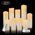 Package Included 9 x Flameless candles(Diameter:2.2",2 x H 4", 2 x H 5",2 x H 6", 1 x H 7", 1 x H 8", 1 x H 9") 2 x remote controls 1 x User Manual STARTING TODAY: Replace Your Traditional Candles With The Most Elegant Flameless Flickering Candles & Enjoy Their Relaxing Effect With Peace Of Mind! Do you love how calming the flame of a small candle is? Are you always worried though about fire danger or any dangerous accident that may happen? Now You Have The Solution: Meet The Flameless Candle Set By & Breathe New Life Into Your House! Designed to exceed your expectations, this set includes 9 elegant pillar LED candles that offer a beautiful ambient touch to your dining room, bedroom or even bathroom, without posing the common threats that a real flamed candle does. This set of 9 classy flameless flickering candles is a great alternative to traditional candles and can be used for a number of occasions. Ideal for: Special nights, events, dinners Birthday Parties Christmas Decoration As Bedside Table Light Ambient nights in the garden, yard, camping Restaurants, pubs, shops and more. A Convincingly Real Flickering Effect That Lasts! Powered by 2 AA Batteries each, (NOT included) these LED pillar candles can live up to 50,000 hours, making them a way more economical solution than real candles that last up to a couple of hours before melting away. And the best part? For your convenience these candles are easily operated through the remote control provided while they feature automatic On/Off timer function, to 2 hours/4 hours/6 hours/8 hours. For example, set 2H at 18:00, it will automatically shutdown at 20:00. Will be automatically open at 18:00 next day, at 20:00 then automatically shut down. It will cycle every 24 hours. Don't Squander It - Order Yours Today! ENERGY SAVING, POWERFUL LEDS: This value pack includes two 4" pillars, two 5" pillar, two 6" pillar , a 7" pillar,a 8" pillar, a 9" pillar,(each 2.2" diameter) candle, remote control x 2. Manual x1. This flameless candle is operated by 2 x AA batteries (Not included) EASY & CONVENIENT OPERATION: With One Remote Control, You Could Control All Our Flickering Flameless Candles of Different Sizes.Timer feature allows you to set 2H | 4H | 6H | 8H, timed to automatically turn on and off. Will Cycle Every 24 Hours SAFETY COMES FIRST: These flameless candles can be used without having to worry of flame, absolutely no fire hazards or burning risks, safe for families with pet or young child(ren). With amazing flameless candle set you can have perfect ambient evenings with peace of mind. THE PERFECT DECORATING : It can be widely applied to Birthday, Christmas, Home decorations, Bars, Hotel, Parties, Holidays, Wedding, or other occasions. DACING FLAME EFFECT: These flameless candles are so realistic that practically indistinguishable from traditional burning candles. Flame simulation technology makes the candles flicker, brings the most realistic experience to any room.