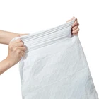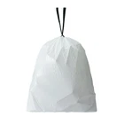 Include: 300 tall kitchen garbage bags Size: 24inch wide x 27inch tall x 0.8 mil thick. Fit most of 13Gallon trash cans White trash bags with deep green drawstring closure. Lift, tie and carry out easily. Stretchy, durable, tear resistant and scent free. Maximum load: 40LBS. Ideal for everyday kitchen and household waste Sets of 6 rolls in a box. 50 bags per roll. One by one dispensing without tearing the bag off