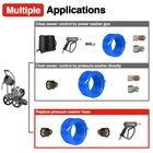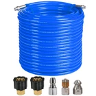 [Scrub Away Grease] 150 FT sewer jetter up to 4000 PSI working pressure & 10000 PSI burst pressure. Cleans household sewer drains, landscape drains, septic field lines, and more. Scrub away grease, sanitary paper, septic sludge, yard debris, ice, and other clogs. With M22-14mm adapters, it's a great for high pressure washer hose. [Easier to through] High-quality polyurethane jackets produce lower friction which avoids the layer being damaged due to friction in the bend, and easier to slide through tricky corners in the sewer. [Acid and Alkali Resistance] OEM standard quality polyurethane inner and outer pipe, performance better corrosion-resistant and could adapt to different acid and alkali environments. Improve better wear-resistant, oil-resistant and 3X longer service life than a normal plastic sewer jetter hose. [Flexible Than Others] Flexible sewer jetter hose and smaller turning radius for easier insertion in more types of drains. Ideal for cleaning around the corner, with a shorter but strengthen head and a flexible hose body, helps you unclog above 2.75" ID narrow and curved main drains, landscaping drains, or curved sewer and scrub the sides of dirty pipes and flush out the blockage in the sewer. [ECO-Material] pressure washer Hoses comply with environmentally-friendly RoHS standard and are made of recyclable material to protect your and earth clean. If you need any help, please feel free to us at any time, we're online 7x24.