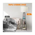Floor Lamp, 3-Tier Round Corner Shelf Floor Lamp with 3 Dimmable Levels - Simple Standing Lamp with White Fabric Shade, Tall Modern Floor Lamps with Shelves for Bedroom, Living Room and Office Description Features: Triple Storage Space: This shelf lamp has 3 tiers, each classic walnut-colored board allows you to put 50 lbs max. You can put photo frames, plants, books, or any items on it. Keep your room clean and tidy. The pads at the bottom of the legs effectively protect hardwood floor. 3-level Dimmable Brightness: The E26 socket of this tall lamp has a high heat dissipation capacity to assure longer lifespan. Besides, this floor lamp with shelves has three light brightness modes: low-medium-high, which is convenient for any scene, like reading, working or daily use. (3-level dimmable Bulb is not included, Max 100W) Easy to Assemble: This shelf floor lamp is easy to install and requires no additional tools or professional skills. You can refer to the installation manual and installation video. If you have any questions about installation or use, please feel free to contact us. (Note: Bulb is not included and it does not support touch control function) Eye-caring Fabric Lampshade: The whole lamp uses a high-quality white fabric shade, which softens the light that passes through, protects your family/children/elder eyes, and creates a warm and comfortable atmosphere at night. Ideal gifts for Decoration: The modern floor lamp is the perfect decoration for bedroom, living room, guest room, hallway or office. The lamp is also a great holiday gift and birthday gift for mothers, fathers, wives, husbands, children, and friends. Product Details: Base Material: high heat dissipation capacity base Bulb Base: E26 Product Dimensions: 14.2"D x 14.2"W x 61"H Item Weight: 3.8 Kilograms Lamp Type: Floor Lamp Product Dimensions : 14.2 x 14.2 x 61 inches; 8.38 Pounds Item model number : RG004 Date First Available : August 9, 2022 Manufacturer : Rislg Country of Origin : China Customer Reviews: 4.3 4.3 out of 5 stars 297 ratings Base Material: high heat dissipation capacity base Bulb Base: E26 Product Dimensions: 14.2"D x 14.2"W x 61"H Item Weight: 3.8 Kilograms Lamp Type: Floor Lamp Shade Material: Fabric Switch Type: Rotary Style: Modern Floor Lamp Brand: RISLG Color: Black Special Feature: 3 Levels Dimmable Brightness, Durable Lampshade, Rotary Swtich Light Source Type: LED Material: Metal Room Type: Office, Living Room Recommended Uses For Product: Reading, Decoration Power Source: Corded Electric Shape: Round Controller Type: touch Number of Light Sources: 1 Connectivity Technology: USB Included Components: Manual Is Waterproof: False Bulb Shape Size: B10 Mounting Type: Pole Mount Wattage: 100 watts Number of Items: 1 Lighting Method: LED Control Method: Touch Indoor/Outdoor Usage: Indoor Specific Uses For Product: Indoor use only Water Resistance Level: Not Water Resistant Installation Type: Freestanding Number of Pieces: 1 Connectivity Protocol: Homeplug Voltage: 120 Volts Is Cordless?: No Size: Large Manufacturer: Rislg Part Number: RG004 Item Weight: 8.36 pounds Country of Origin: China Item model number: RG004 Maximum Compatible Wattage: 100 Watts Special Features: 3 Levels Dimmable Brightness, Durable Lampshade, Rotary Swtich Batteries Included?: No Batteries Required?: No Average Life: 20000 Hours Date First Available: August 9, 2022 Delivery We Do Not Ship Outside of the Continental US. Return Policy All items qualify for returns within 30 days of receipt. Buyer is responsible for return shipping on any item that is not damaged. Feedback We take our reputation seriously, we buy and sell online, so we understand the value of trust. If you are unsatisfied with your order, please contact us and we will work with you to resolve it to your satisfaction.
