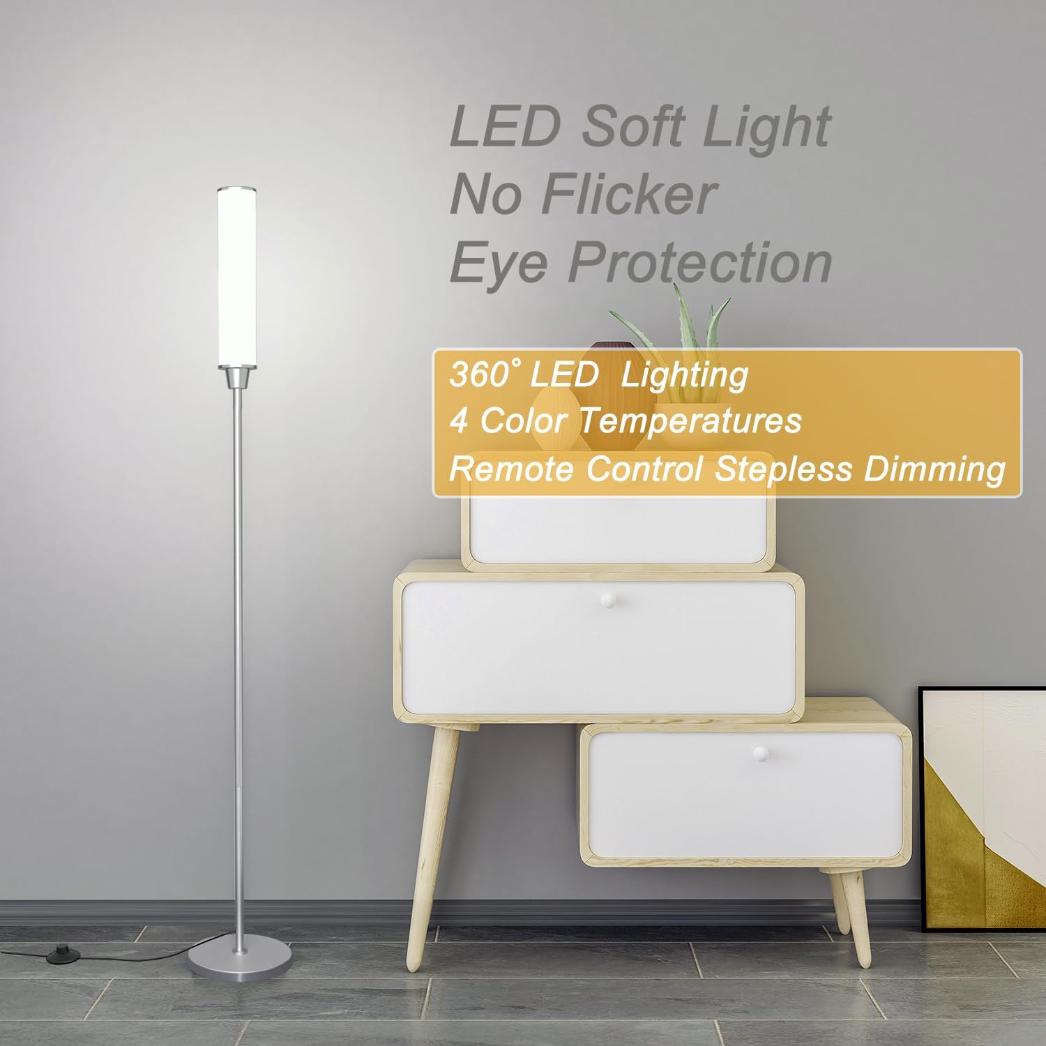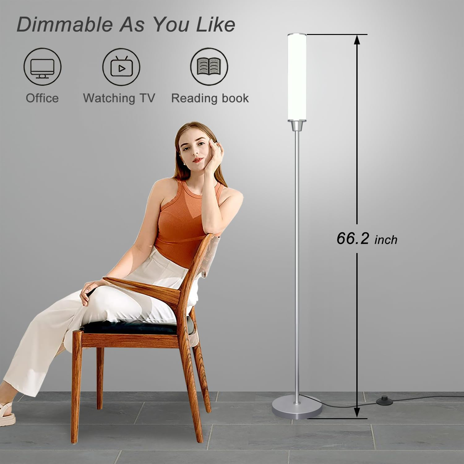 Store New Arrivals Add to Favorite View Feedback Contact Floor Lamp with Remote Control,Bright Floor Lamps for Living Room/Bedroom/Office, Stepless Adjustable 3000K-6000K Colors and 10-100% Brightness,Standing Light with Foot Switch (Nickel) Description Item model number HTY-360FLA-P3 Light Source Type LED Style Modern Number of Items 1 Power Source Corded Electric Number of Light Sources 1 Country of Origin China Batteries Included? No Lighting Method 360-degree luminescence Lamp Type LED Number of Pieces 4 Room Type Office, Bedroom, Living Room, Study Room, Dining Room Maximum Compatible Wattage 12 Watts Assembly Required Yes Installation Type Freestanding Average Life 50000 Hours Product Dimensions 8"D x 8"W x 66.2"H Material Metal Efficiency 100 lumens per watt Controller Type Remote Control Finish Type Painted Specific Uses For Product General purpose Color Rendering Index (CRI) 85.00 Indoor/Outdoor Usage Indoor Brightness 1200 Lumen Control Method Remote Bulb Features Dimmable Connectivity Protocol no Item Weight 5.68 pounds Connectivity Technology IR Special Features Adjustable Color Temperature,Dimmable,Energy Efficient,Decoration Special Feature Adjustable Color Temperature,Dimmable,Energy Efficient,Decoration Shade Color white Shade Height 66.2 Inches Part Number dhy01 Bulb Shape Size T Mounting Type Floor Mount Color Nickel Wattage 12 watts Is Cordless? No Base Material Metal Is Waterproof False Shape Straight Voltage 12 Volts (DC) Batteries Required? No Shade Material Plastic Finish types Painted Included Components Custom led tube Switch Type Push Button,remote 360 Degrees Bright Lighting:The modern floor lamp adopts high brightness and low heat LED advanced technology, Bright floor lamp and up to 50000 hours of life. The tall lamp provides 360-degree lighting without dead angle, soft and comfortable light, suitable for living room, bedroom or office ,etc. Adjustable Colors & Brightness:You can stepless adjust the brightness from 10% to 100% and color temperature from 3000K-6000K, and also has 5 customized model with remote control for easy using. Smart Remote Control and Foot Switch:With the remote control, you can easily control the corner floor lamp without leaving the sofa and warm bed (with a 32.8ft/10m range).Just press a button, get the right brightness and color temperature for reading, working, leisure, breastfeeding and sleeping.The foot switch allows you to switch the led floor lamp on and off without using your hands, just step on it with your foot. Sturdy Safe Base and Save Space:The base is heavy. The base provides good stability and won't fall, which can ensure safety and stability for your baby and pet. Space saving design, you can put the standing lamp under the sofa or in tight corners. Easy to Assemble:Assembly is easy, just follow the included diagram. no additional tools or parts are needed! we provide a 24-month warranty period,Please feel free to email if you need any assistance. Product Description With the light, with the warmth Nukanu always pay attention to people themselves and design excellent and heart-warming products! Simple and elegant, this nickel floor lamp for living room bedroom office is easy to place. Adjustable light and color to meet your individual needs, when you see a beam of light you like, you will feel happy! Package includes: Floor lamp x1 Remote control x1 (without battery) 12V Power Adapterx1 Manual x1 The bright floor lamp Features: Bright-The dimmable floor lamp build-in 156 pcs high brightness LEDs,1200Lumen . Adjustable Colors & Brightness-Easily select multiple colors and brightness. Long Lifetime-With 50000 Hours long lifetime LED lights, you don't need to replace any bulb Safe Design - Weighted and sturdy base ensures good stability of the stand up lamp and won't fall Eyes Protection-Soft light offer you a cozy experience 360 degree uniform light emission Nukanu nickel floor lamps adopts a 360-degree light-emitting design, the top dissipates heat, and the standing lamps is not hot Smart Remote Control With the remote control, you can easily control the tall floor lamps without leaving the sofa and warm bed(with a 32.8ft/10m range) Foot Switch The foot switch allows you to switch the corner lamp on and off without using your hands, just step on it with your foot living room office read night light Matching function: 1: If your floor lamp is turned on randomly (actually other remote controls turn on your floor lamp), please match the remote control with the floor lamp,the floor lamp will not be turned on randomly. 2: If you have multiple Nukanu floor lamps that need to be controlled separately, you can match the remote control with the floor lamp. Matching steps: Press the match key and hold it for 5 seconds until the light flashes 3 times quickly, that is, the match is successful. If the light flashes slowly for 5 times, press the match key again and hold it for 5 seconds until the light flashes quickly for 3 times. Once matched, only this remote can controls the floor lamp. (Note: When matching, if there are multiple Nukanu floor lamps, please unplug other Nukanu floor lamps) Let the light warm our hearts! Nukanu is always here! ABOUT US We’re dedicated to bringing you great deals on quality products. From home décor and garden essentials to tools, hardware, and pet accessories, our store has something for everyone — all at prices you’ll love. SHIPPING We ship all orders directly from the USA for fast, reliable delivery. Most items ship within 1 business day and include free shipping to the lower 48 states. For international orders, we use eBay’s Global Shipping Program — simply continue checkout to see costs, duties, and taxes for your country. FREE RETURNS We offer a 30-Day Return Policy on items which you are not completely satisfied with. You have the option for a full-refund or an exchange of the item. CUSTOMER SATISFACTION We do everything we can to ensure every customer is 100% satisfied. If something